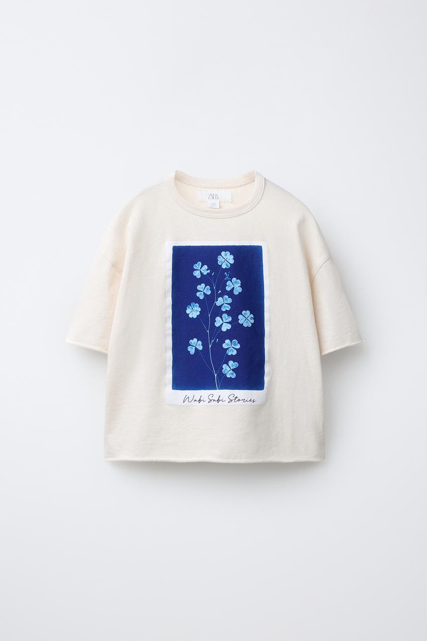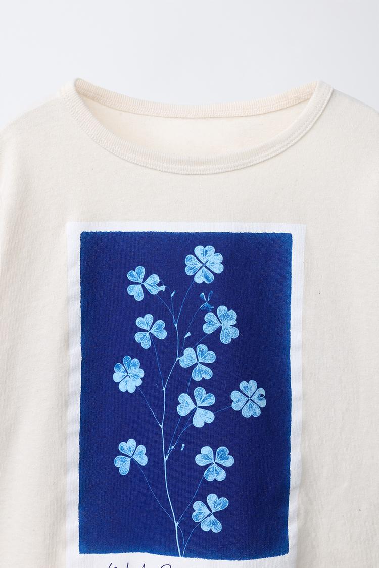 ZARA ФУТБОЛКА С ЦВЕТОЧНЫМ ПРИНТОМ, ЭКРЮ