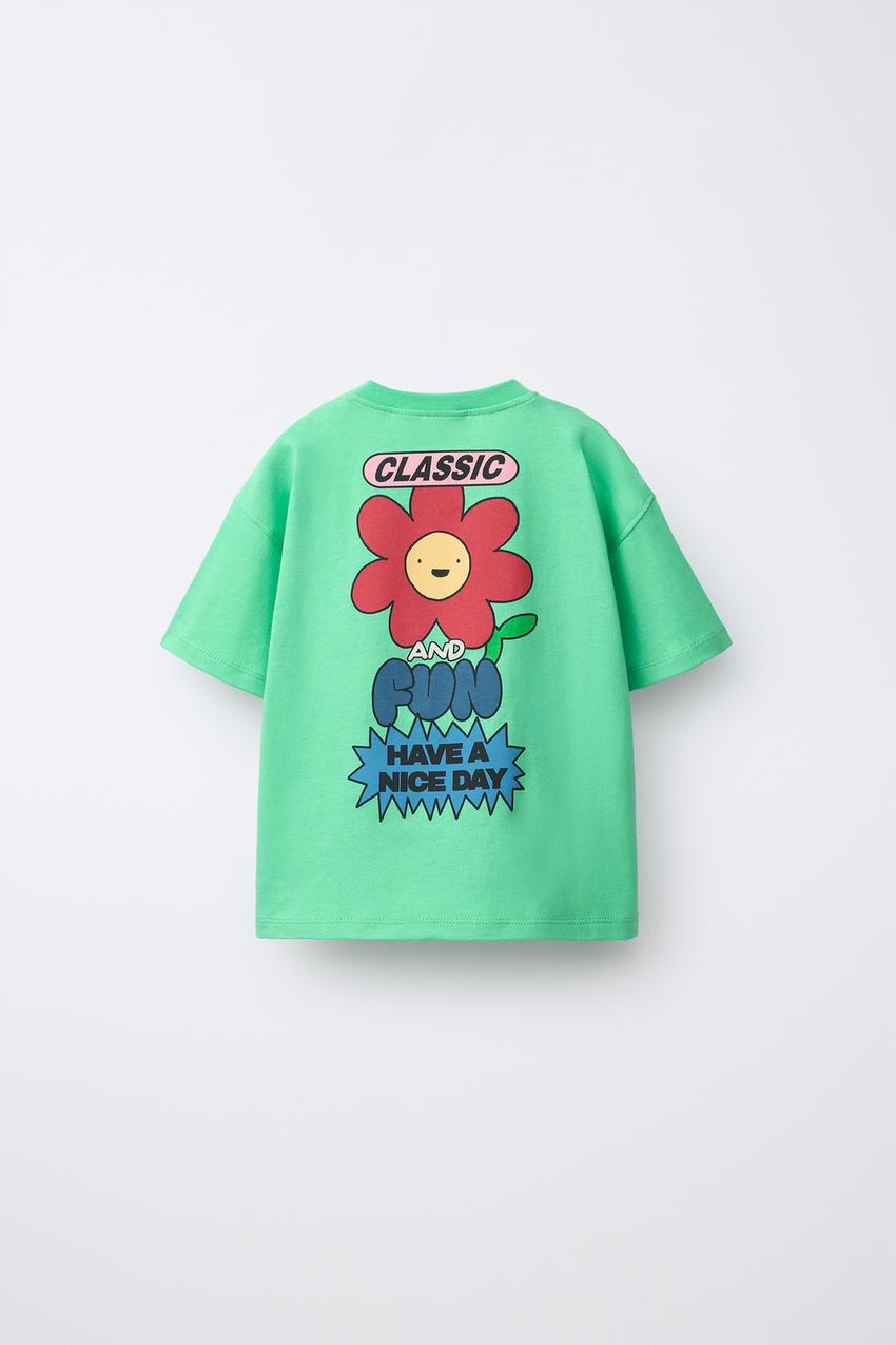 ZARA ФУТБОЛКА С ЦВЕТОЧНЫМ ПРИНТОМ, СВЕТЛО-ЗЕЛЕНЫЙ