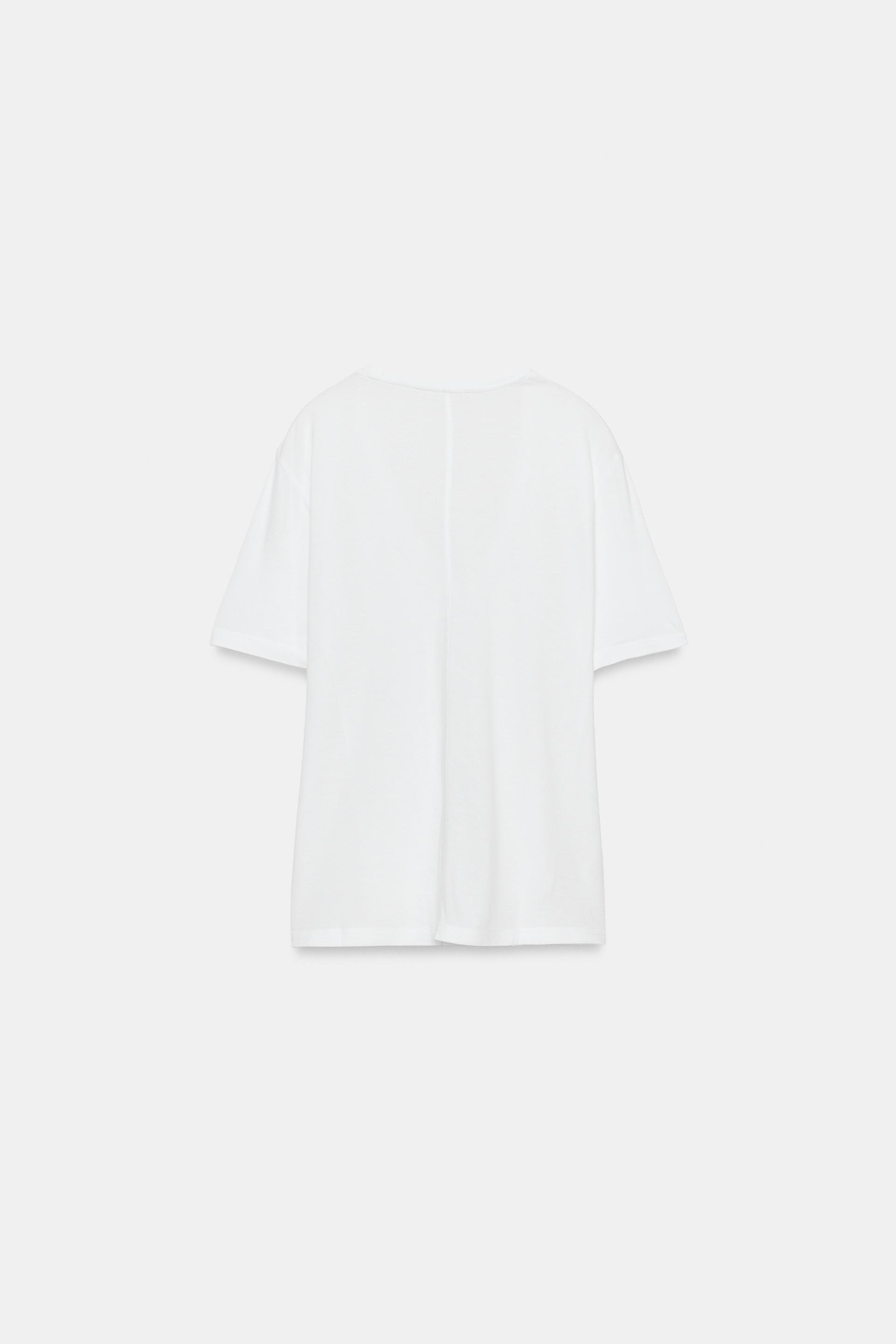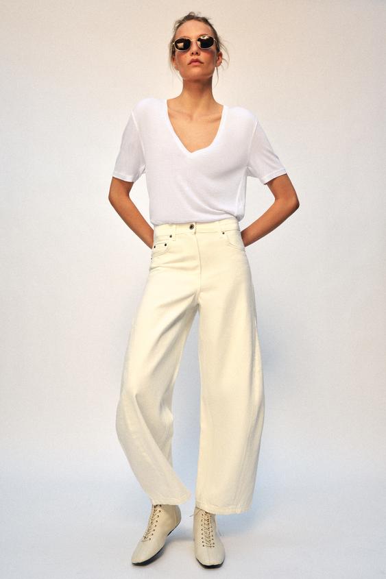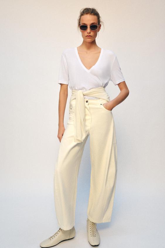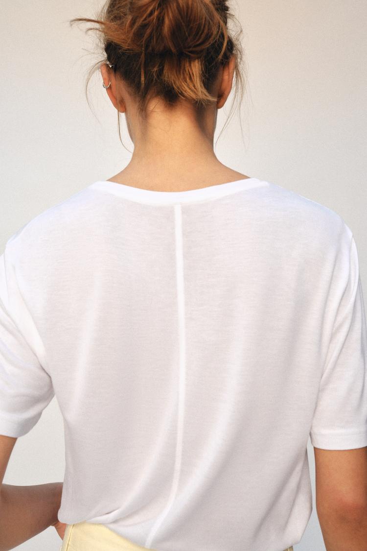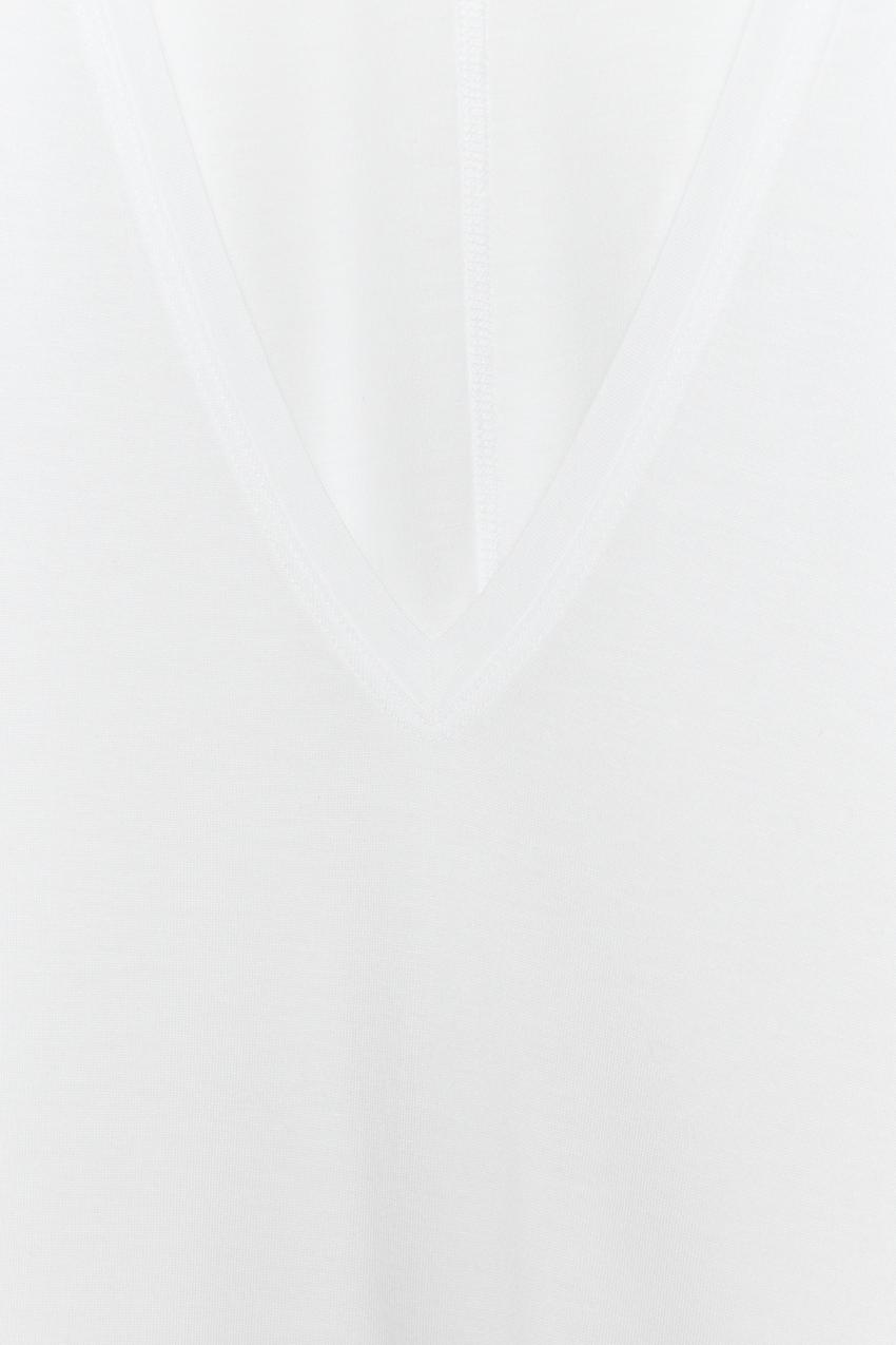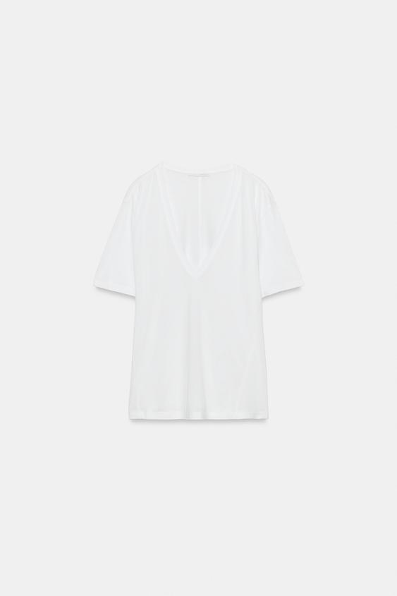 ZARA ФУТБОЛКА С V-ОБРАЗНЫМ ВЫРЕЗОМ, БЕЛЫЙ