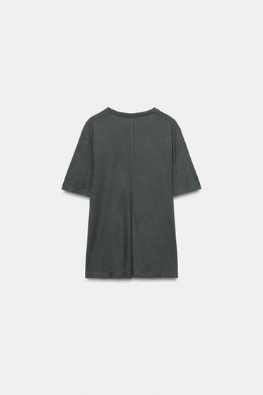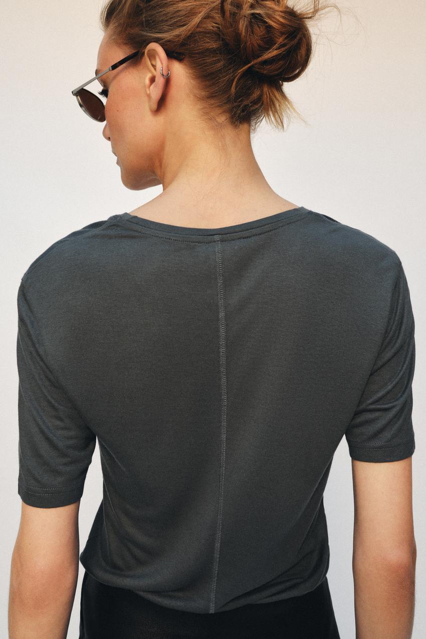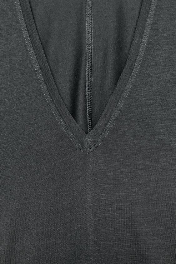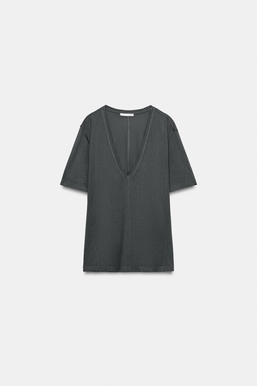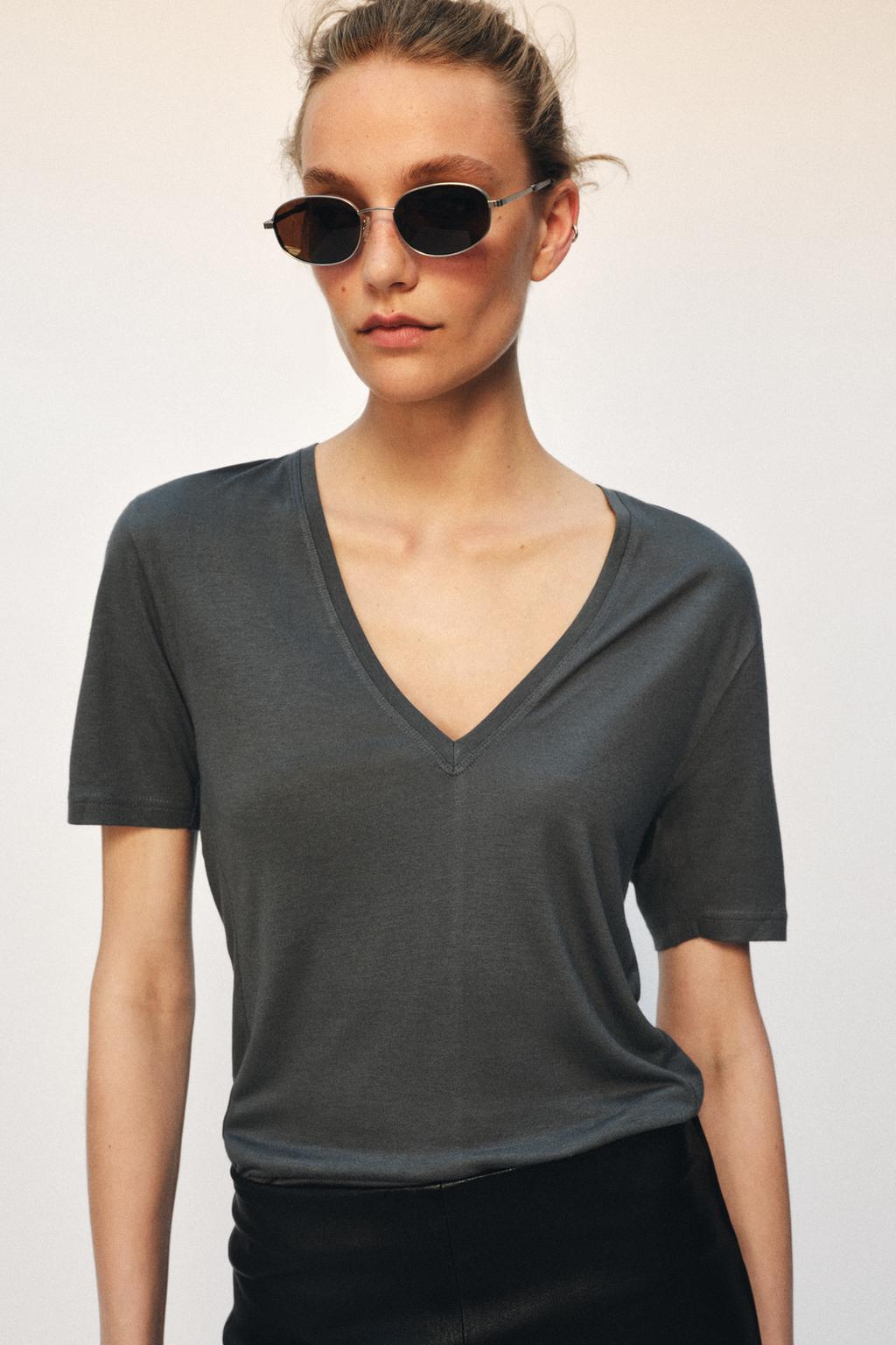 ZARA ФУТБОЛКА С V-ОБРАЗНЫМ ВЫРЕЗОМ, ТЕМНЫЙ СВИНЕЦ