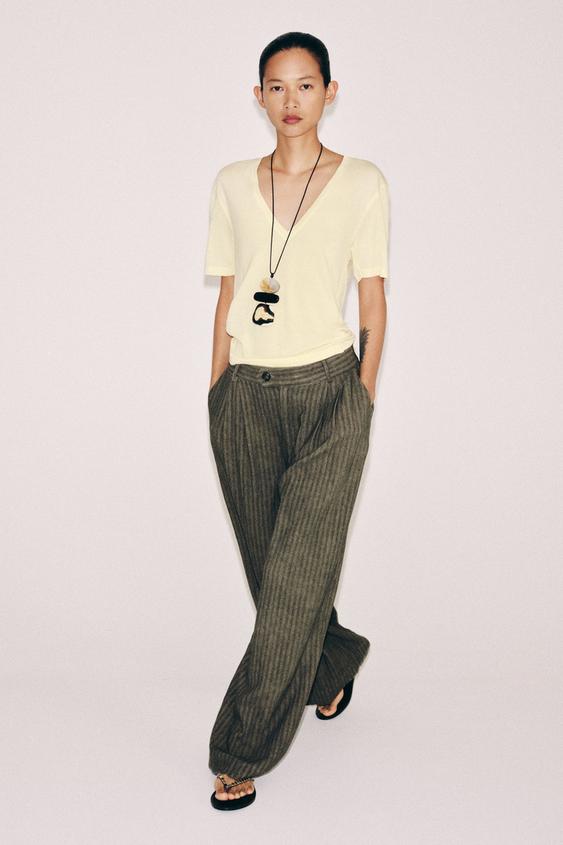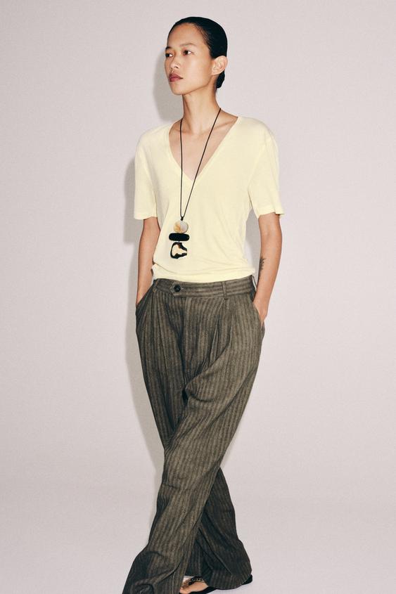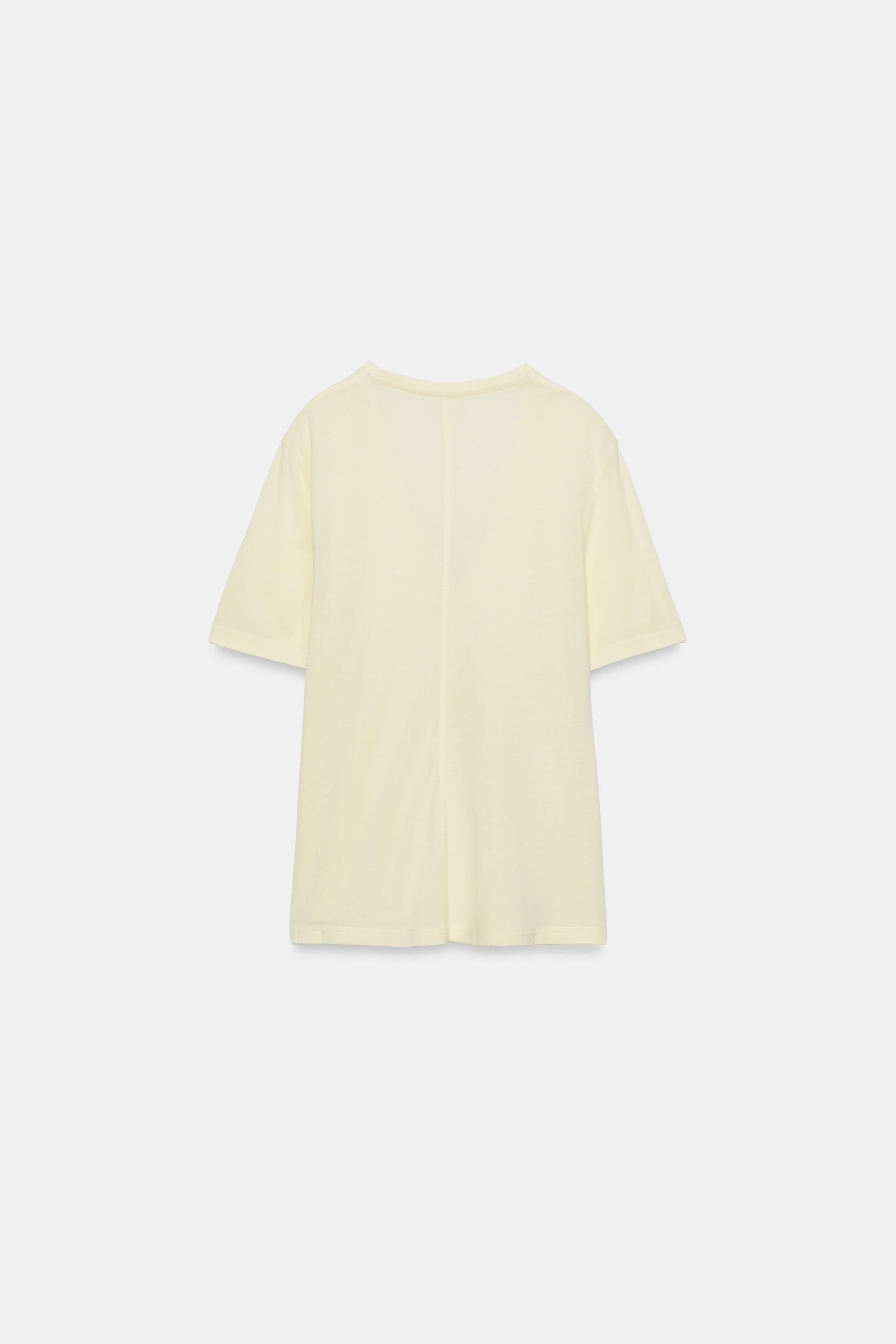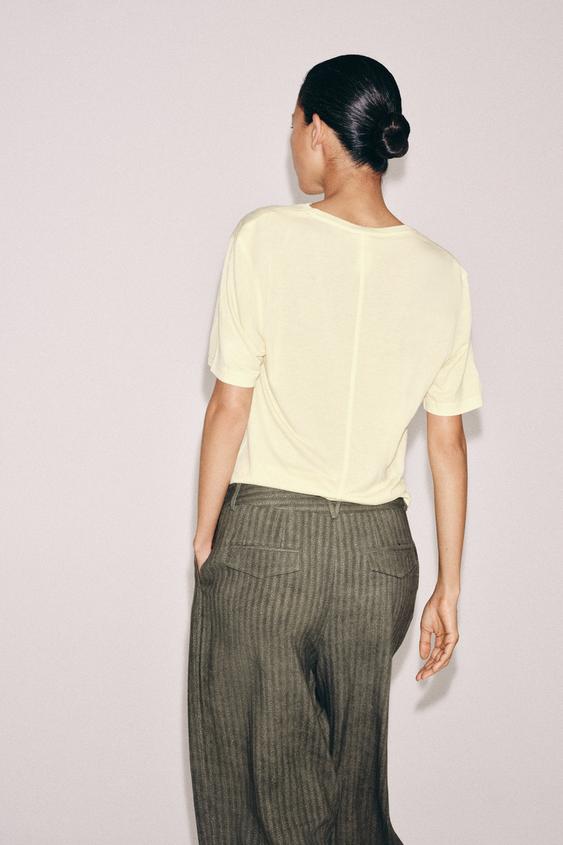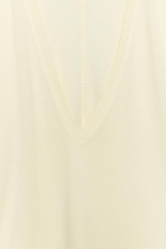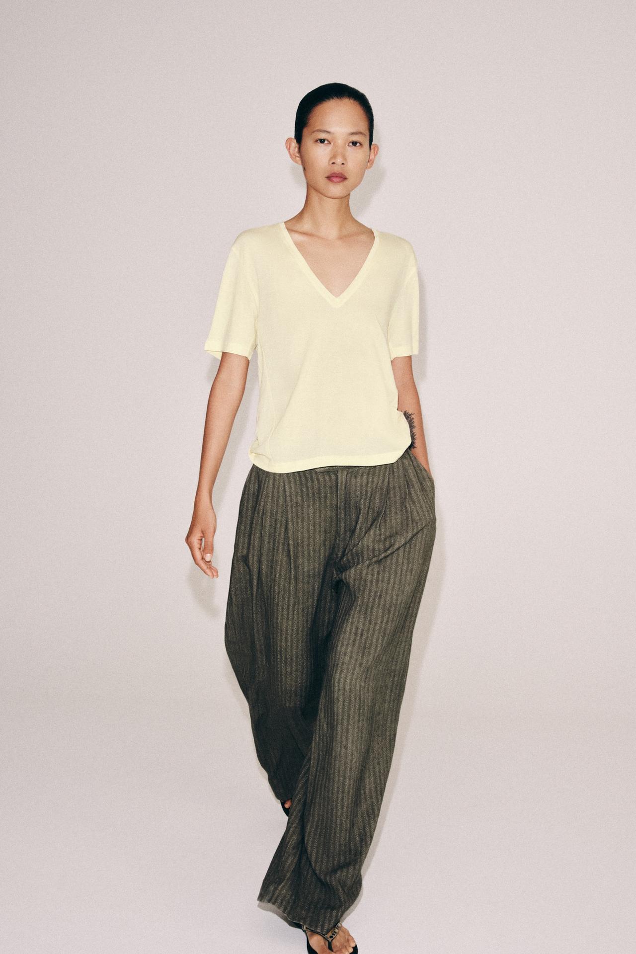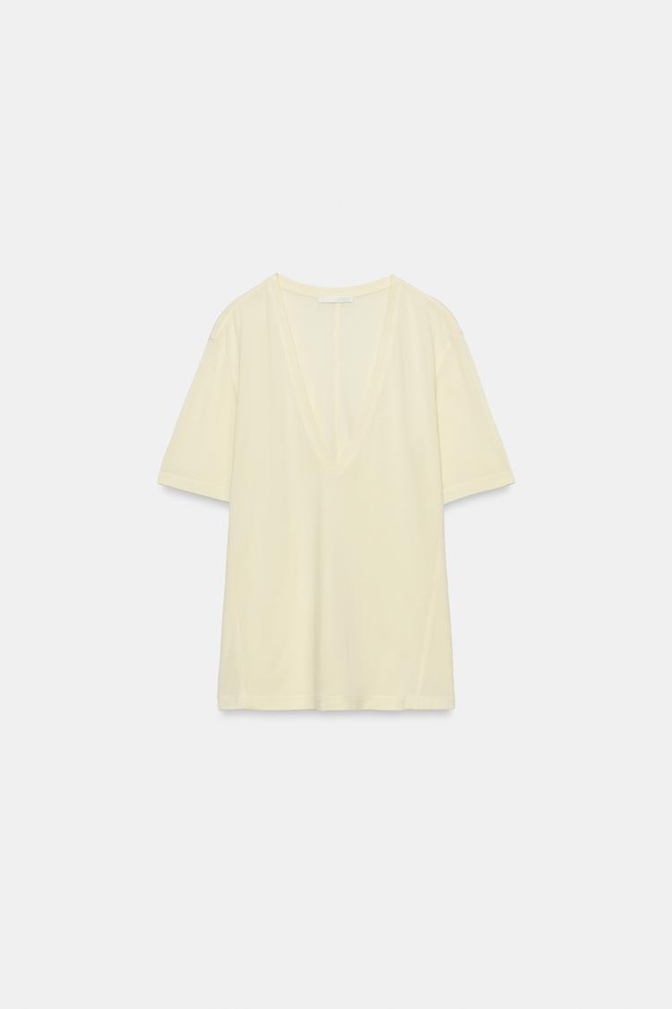 ZARA ФУТБОЛКА С V-ОБРАЗНЫМ ВЫРЕЗОМ, ЖЕЛТЫЙ