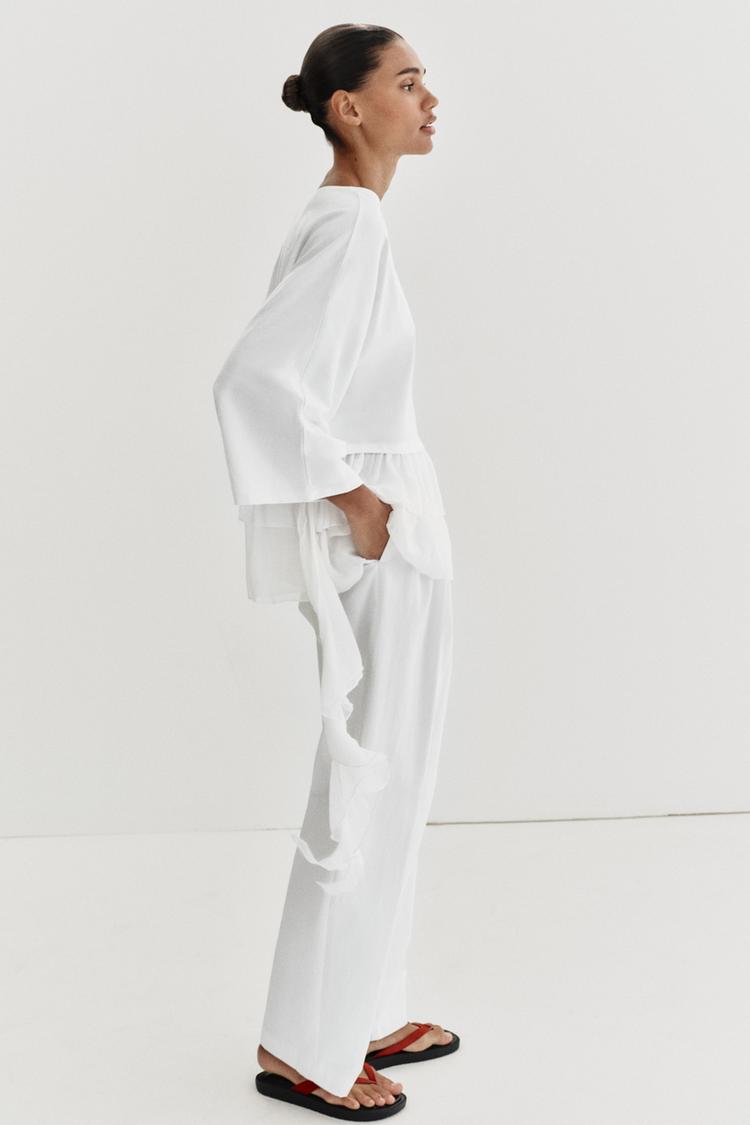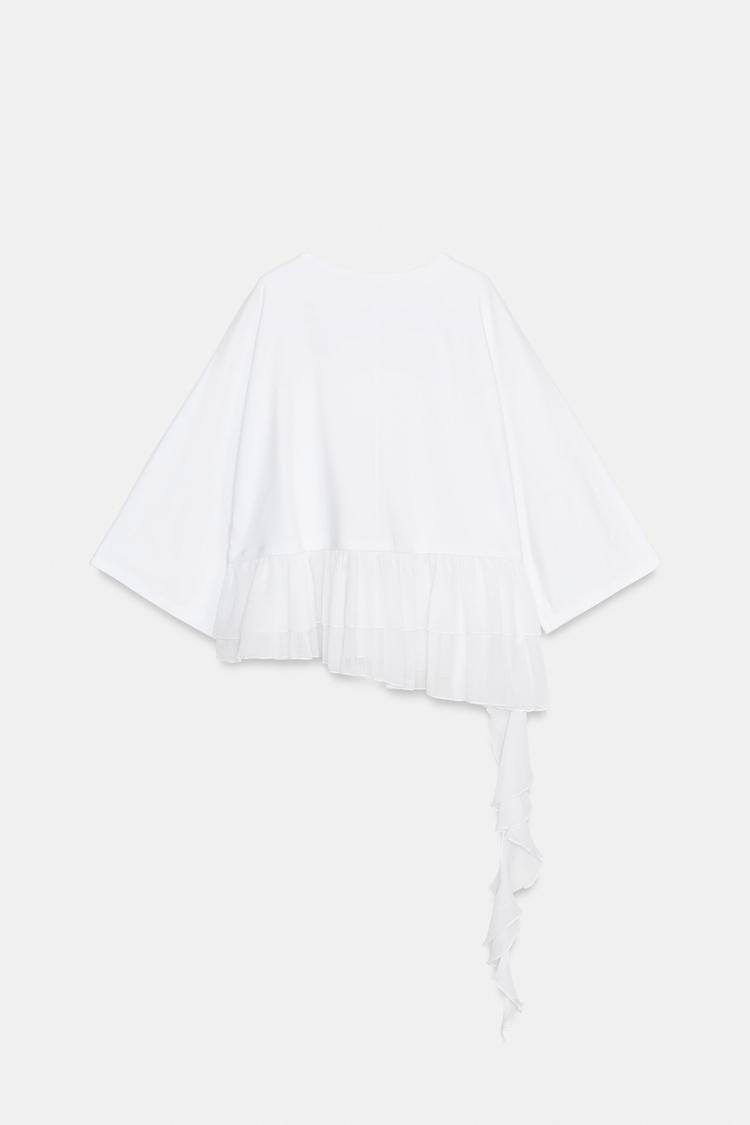 ZARA ФУТБОЛКА С ВОЛАНАМИ, БЕЛЫЙ
