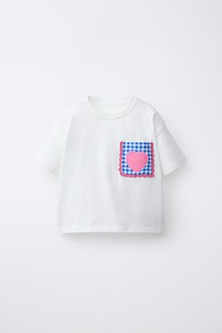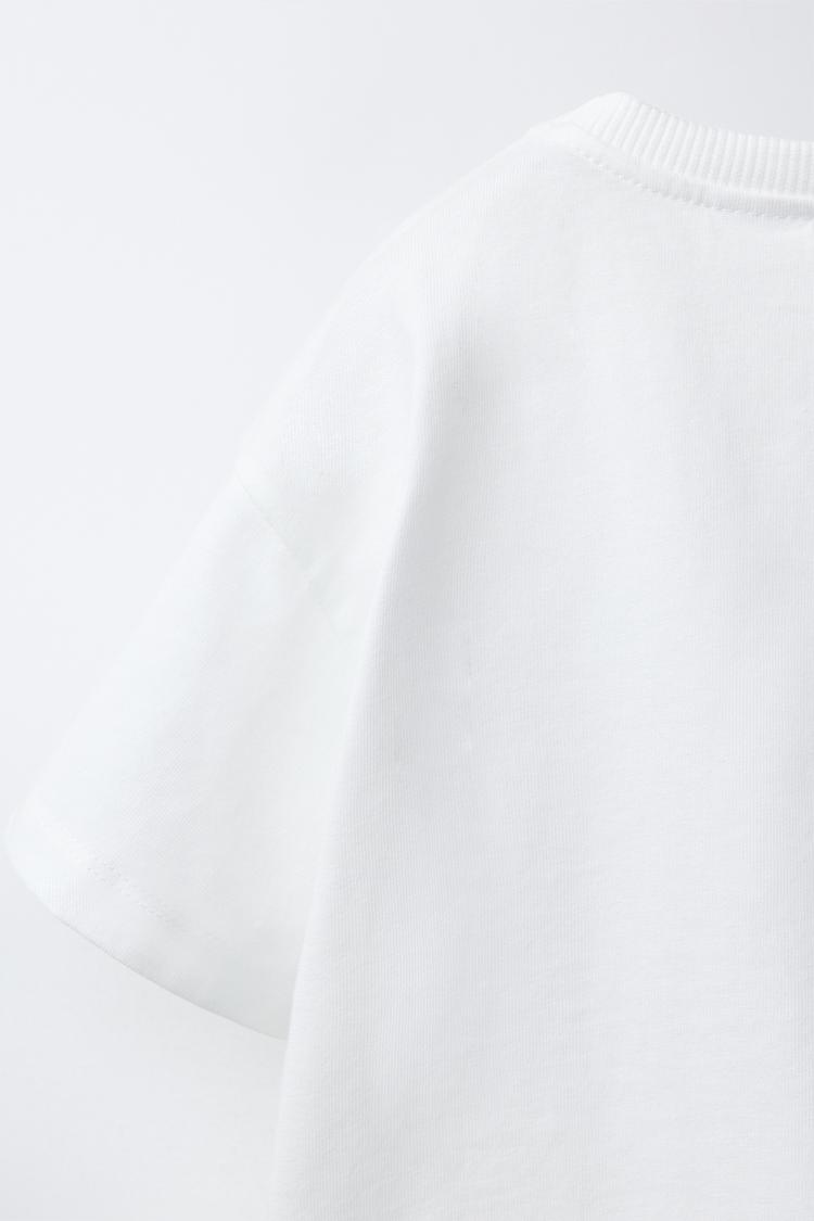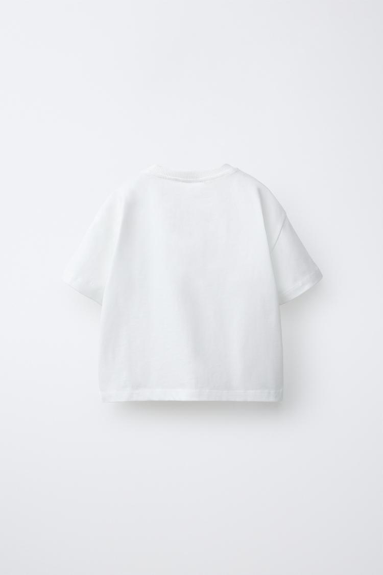 ZARA ФУТБОЛКА С ВОЛНИСТЫМ КАРМАНОМ, БЕЛЫЙ