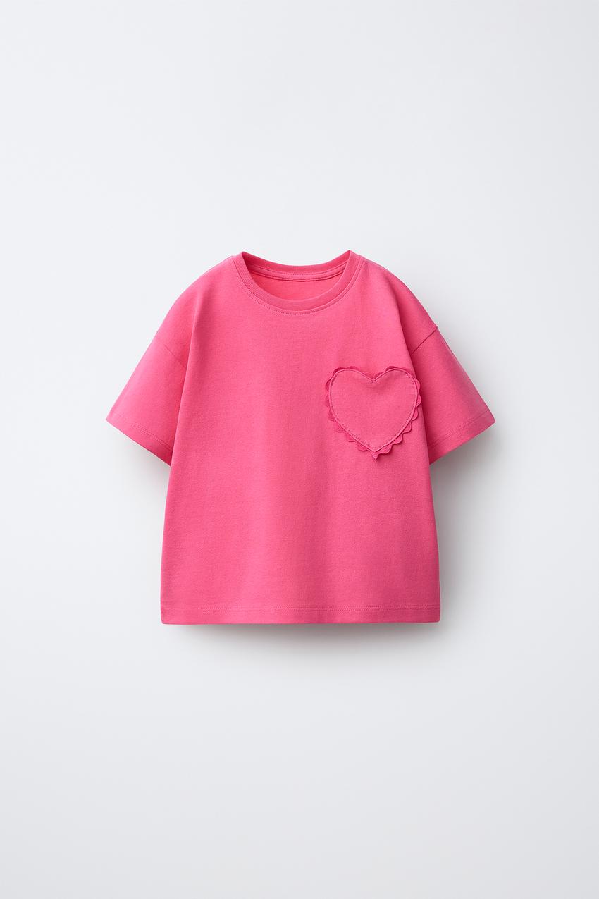 ZARA ФУТБОЛКА С ВОЛНИСТЫМ СЕРДЦЕМ, КОРАЛОВЫЙ