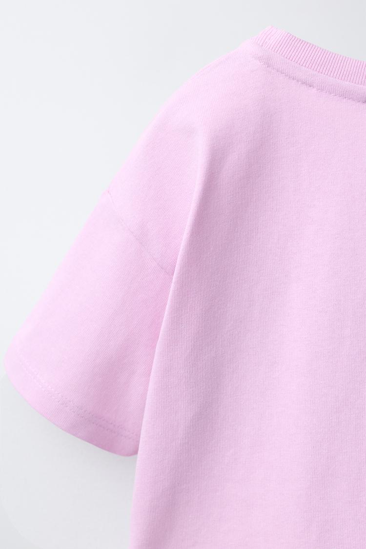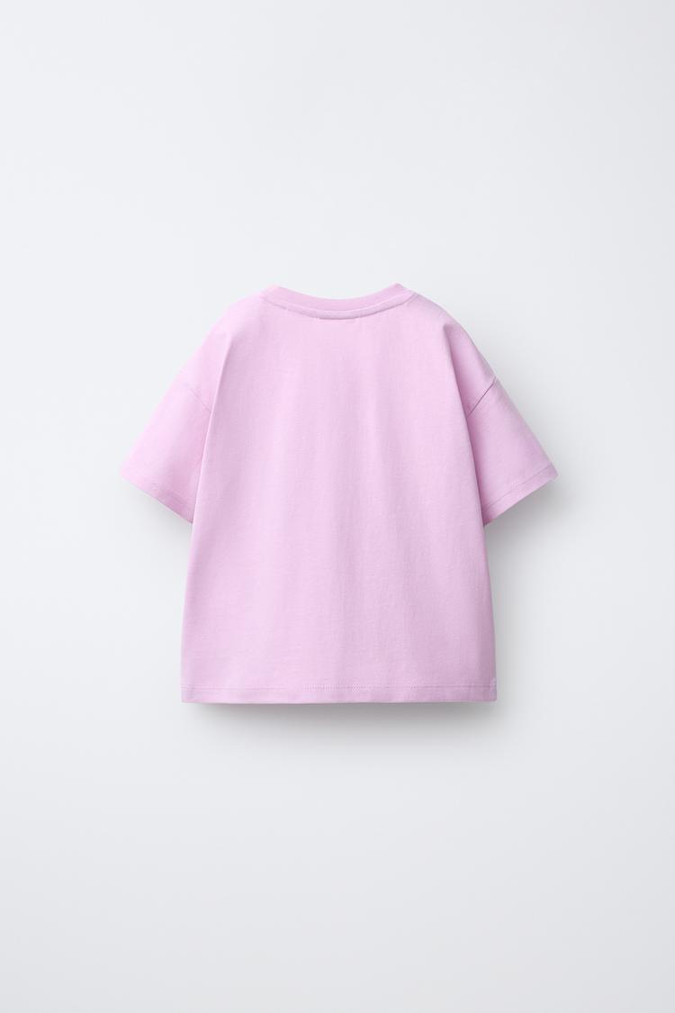 ZARA ФУТБОЛКА С ВОЛНИСТЫМ СЕРДЦЕМ, ЦВЕТ МАЛЬВЫ