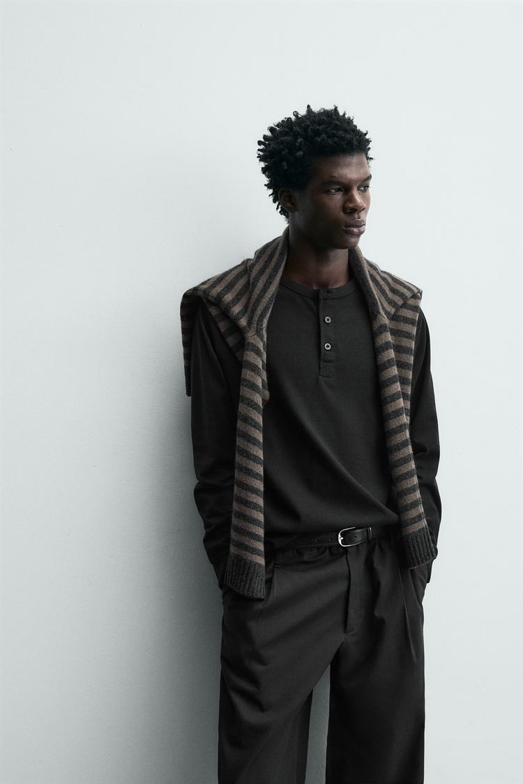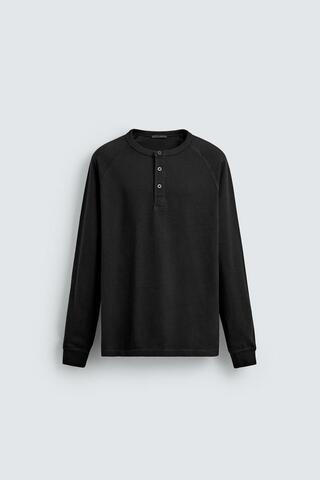 ZARA ФУТБОЛКА С ВОРОТНИКОМ НА ПУГОВИЦАХ, ЧЕРНЫЙ