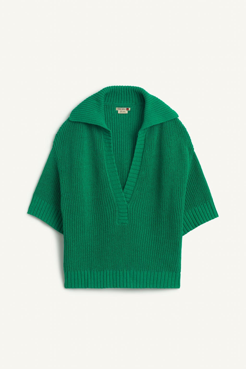 ZARA ФУТБОЛКА С ВОРОТНИКОМ-ПОЛО, ЗЕЛЕНЫЙ