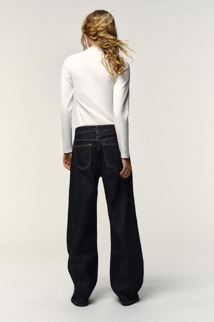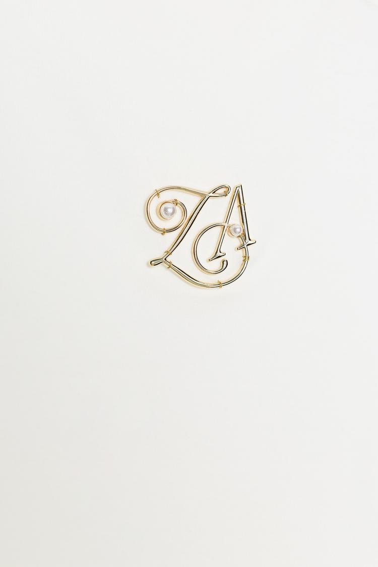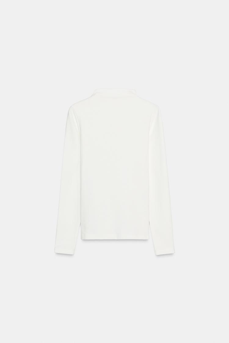 ZARA ФУТБОЛКА С ВОРОТНИКОМ-СТОЙКОЙ И БРОШЬЮ, ЖЕЛТОВАТО-БЕЛЫЙ