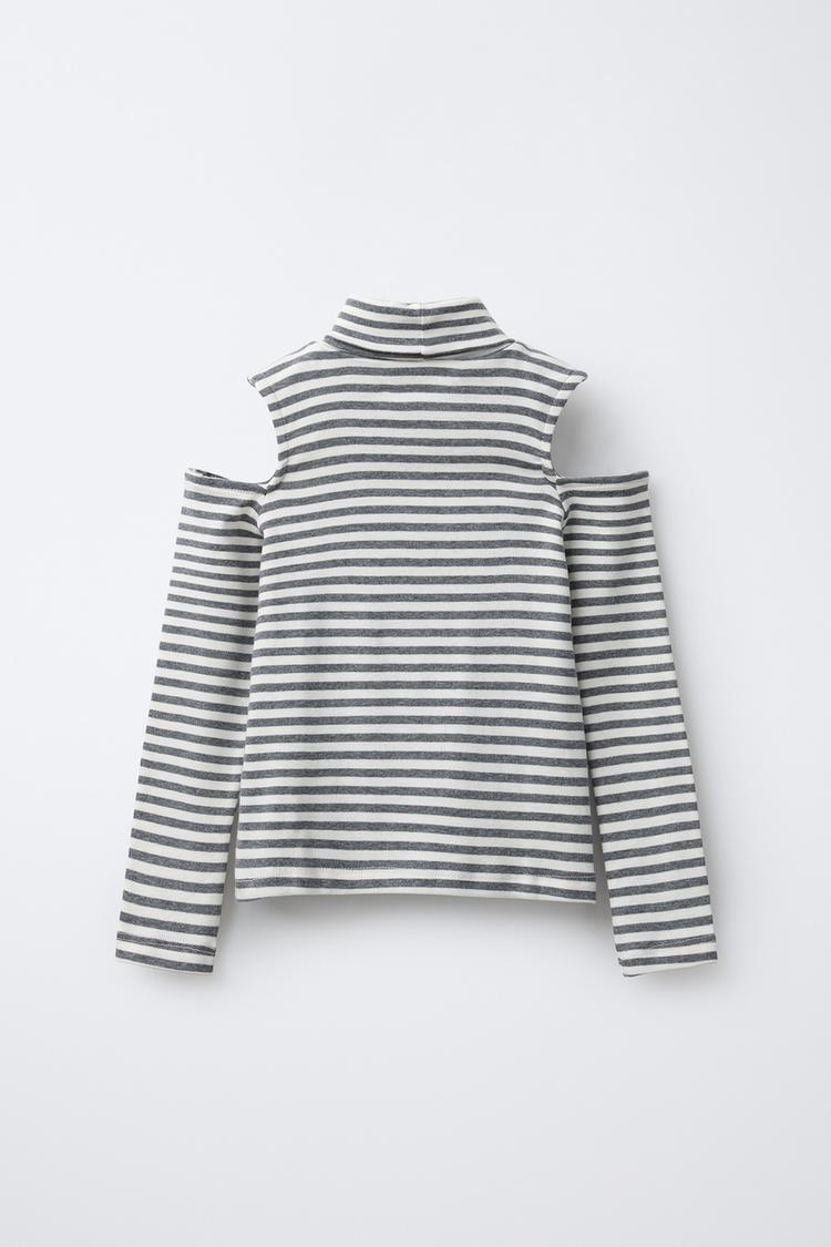 ZARA ФУТБОЛКА С ВОРОТНИКОМ-СТОЙКОЙ И ВЫРЕЗАМИ, ПОЛОСКИ
