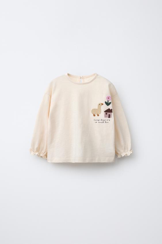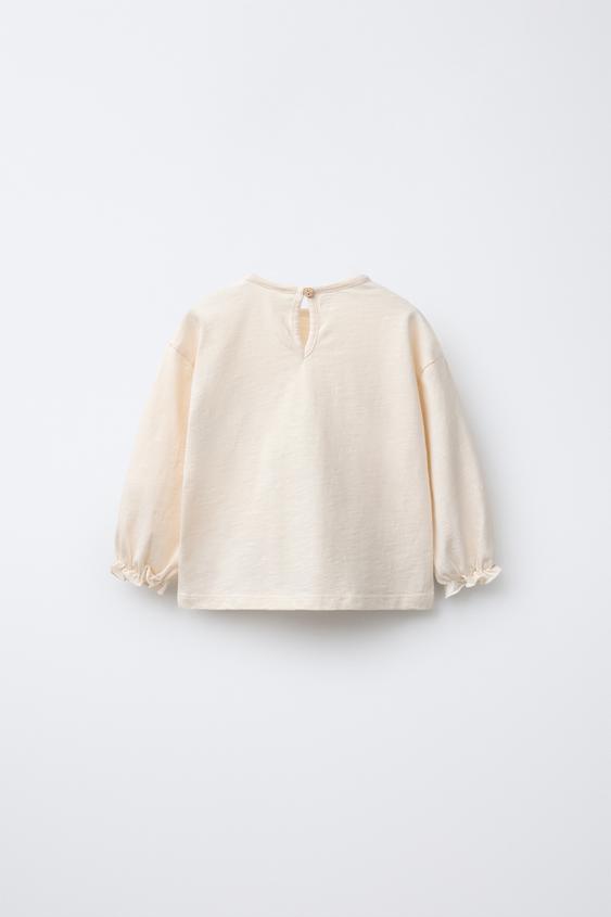 ZARA ФУТБОЛКА С ВЯЗАНЫМИ НАШИВКАМИ, ЭКРЮ