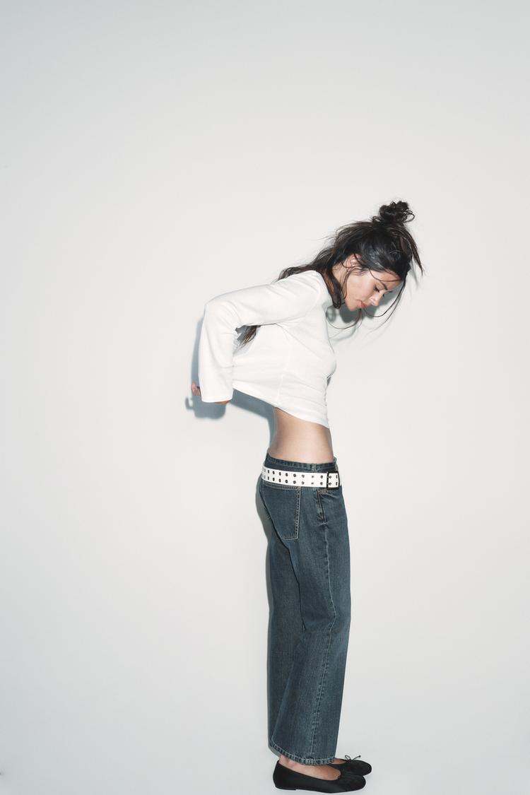 REGULAR FIT - ВЫРЕЗ «ЛОДОЧКА» - СТАНДАРТНАЯ ДЛИНА - ДЛИННЫЕ РУКАВА Футболка из пряжи с добавлением хлопка. Вырез «лодочка» и длинные рукава. Прямой низ.