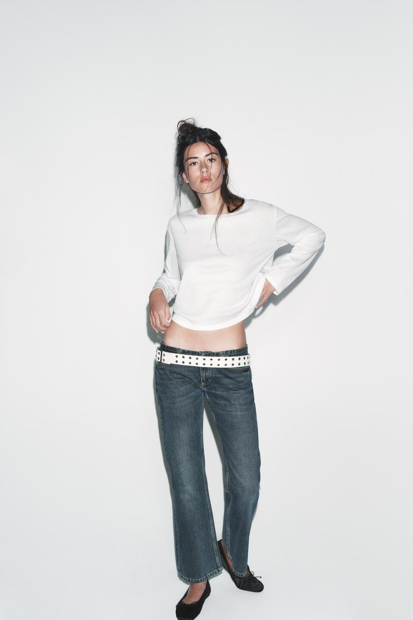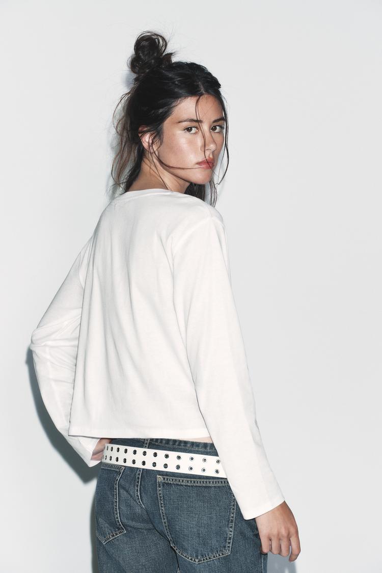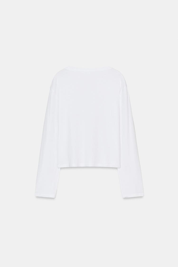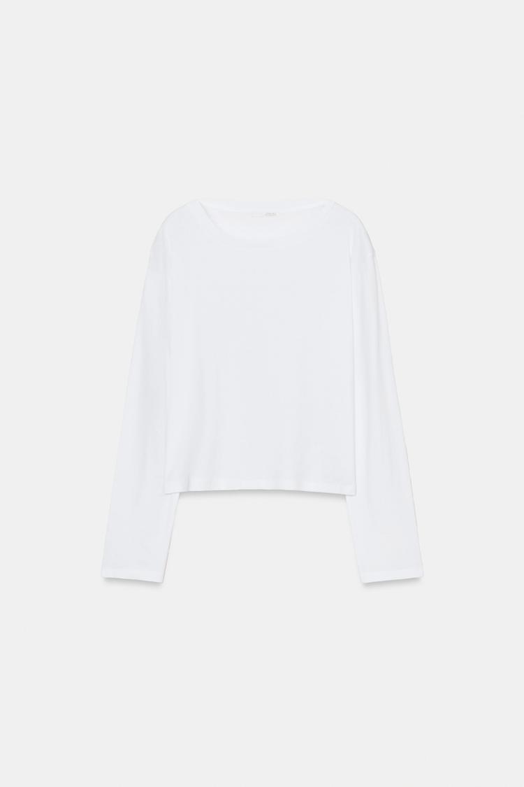 ZARA ФУТБОЛКА С ВЫРЕЗОМ «ЛОДОЧКА» И ДЛИННЫМИ РУКАВАМИ, БЕЛЫЙ