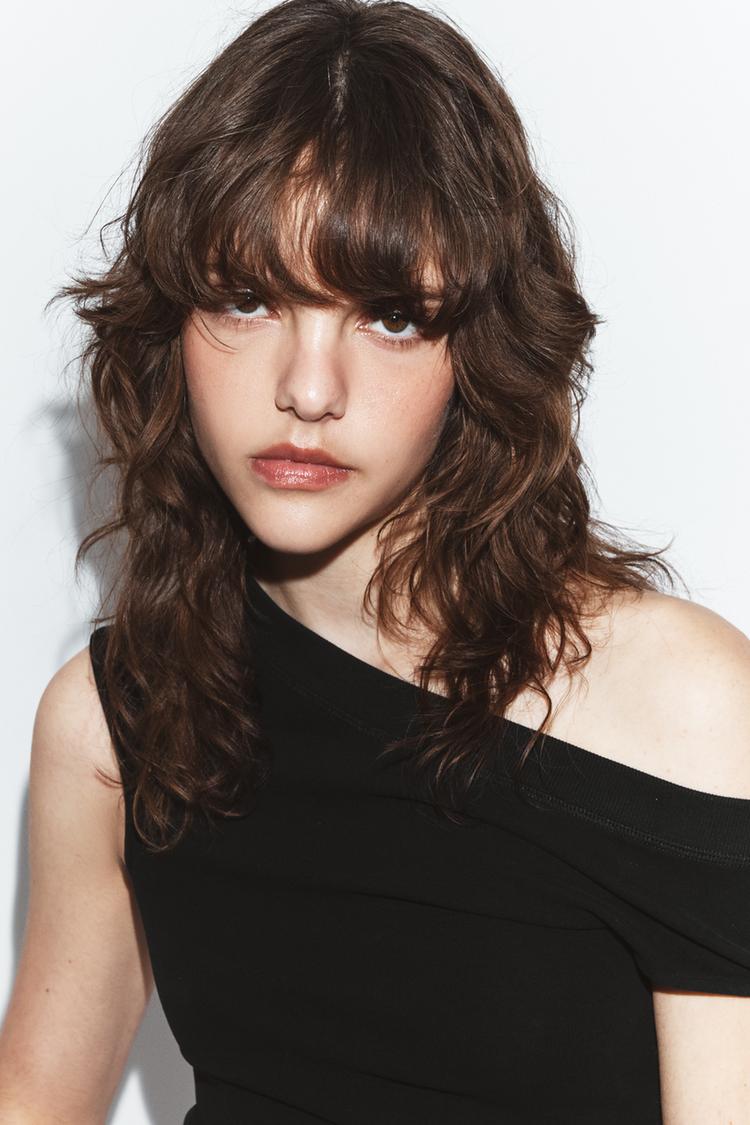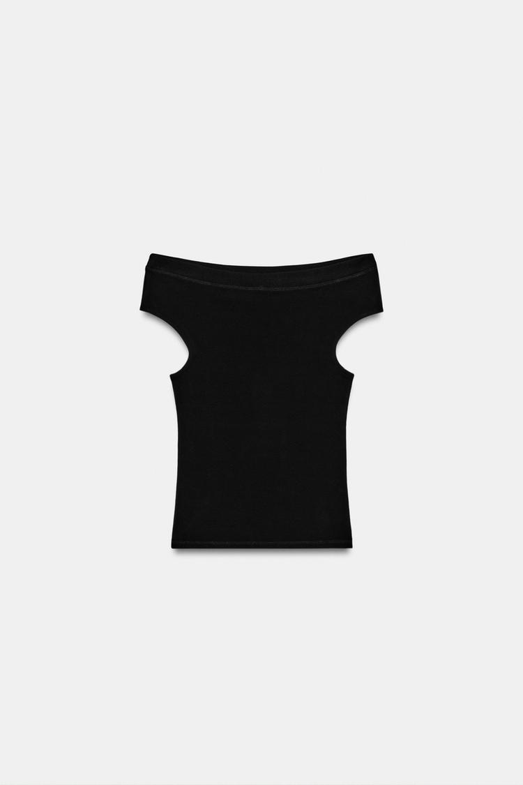 ZARA ФУТБОЛКА С ВЫРЕЗОМ ЛОДОЧКОЙ, ЧЕРНЫЙ