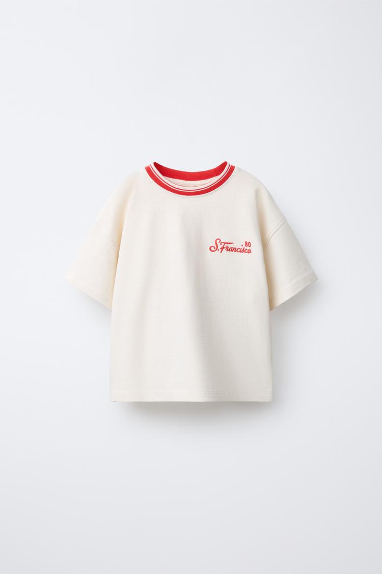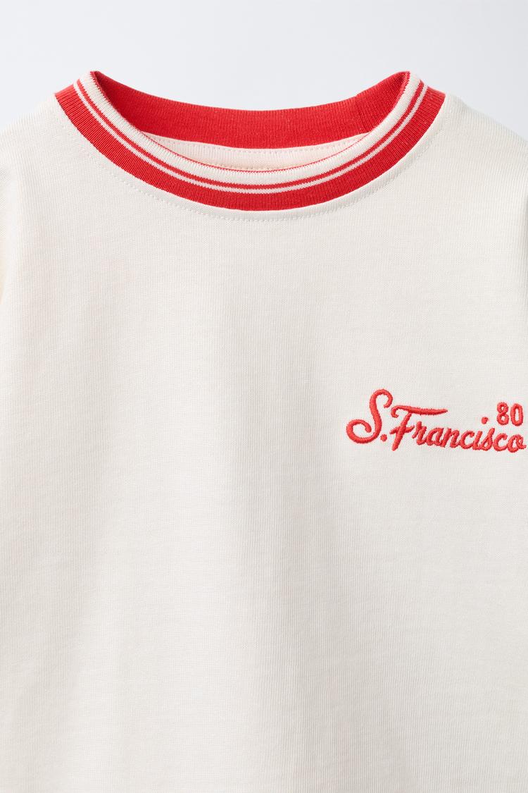 ZARA ФУТБОЛКА С ВЫШИТОЙ НАДПИСЬЮ, БЕЛЫЙ