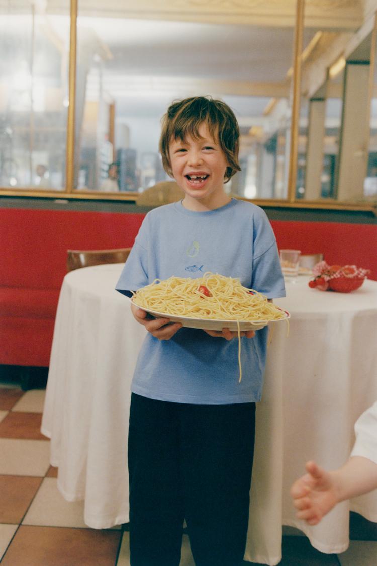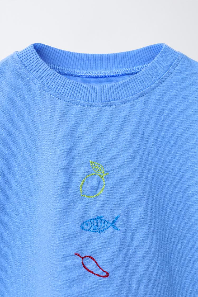 ZARA ФУТБОЛКА С ВЫШИТОЙ НАДПИСЬЮ, ГОЛУБОЙ