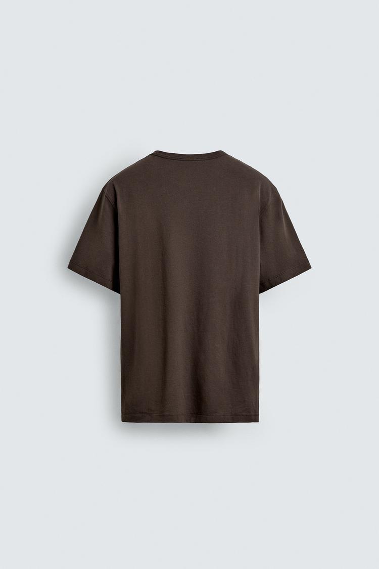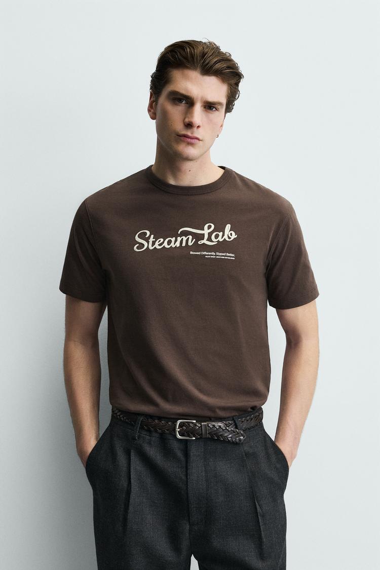 ZARA ФУТБОЛКА С ВЫШИТОЙ НАДПИСЬЮ, КОРИЧНЕВЫЙ