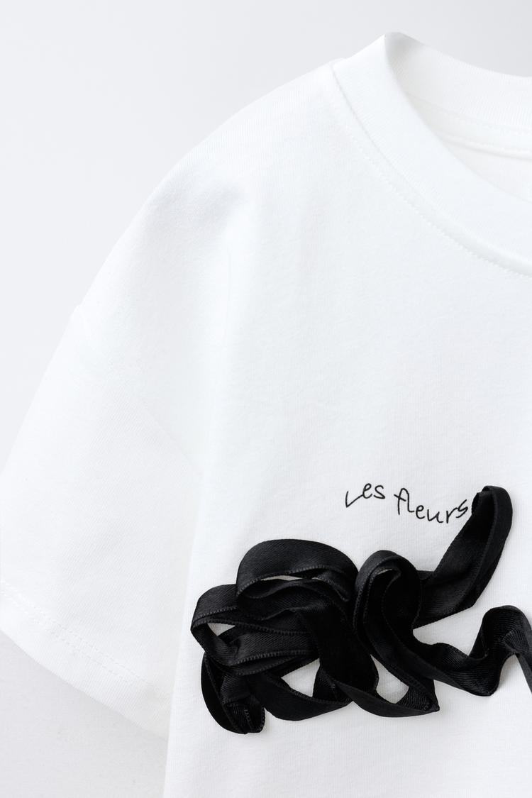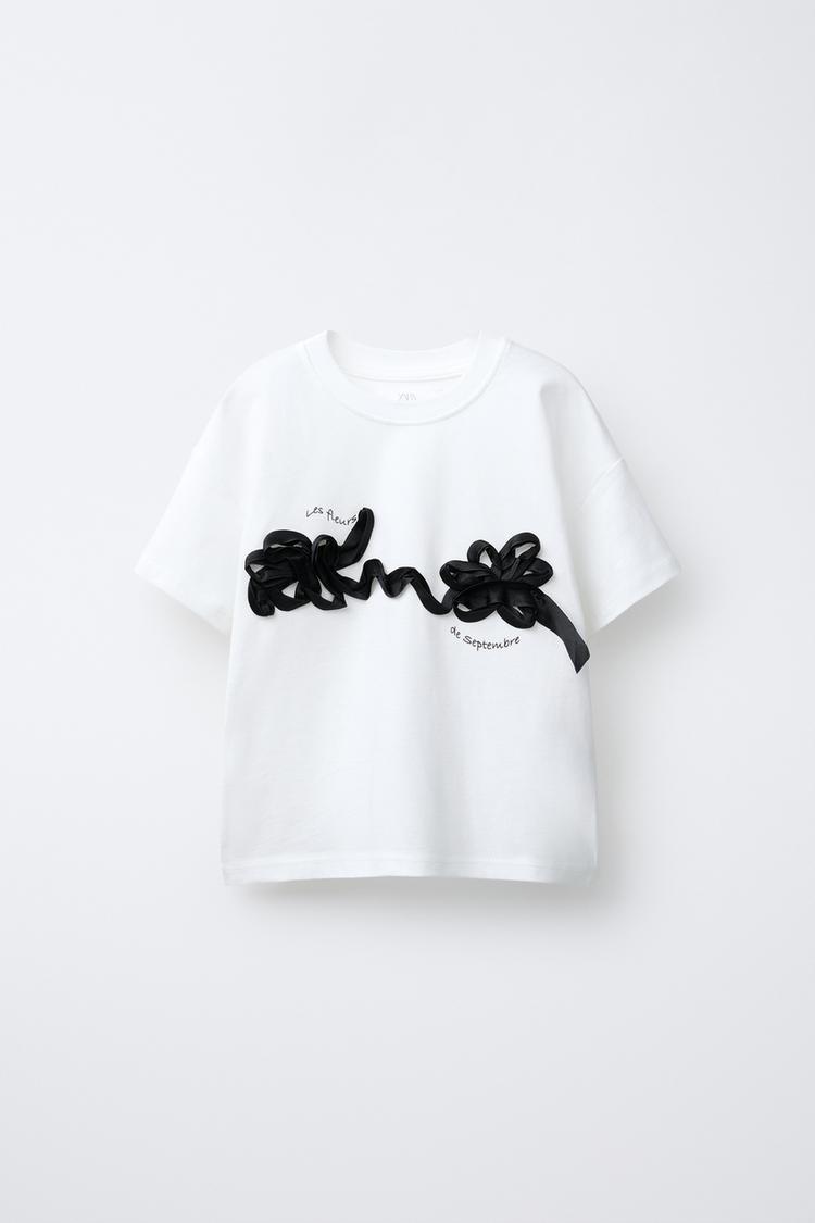 ZARA ФУТБОЛКА С ВЫШИВКОЙ, БЕЛЫЙ