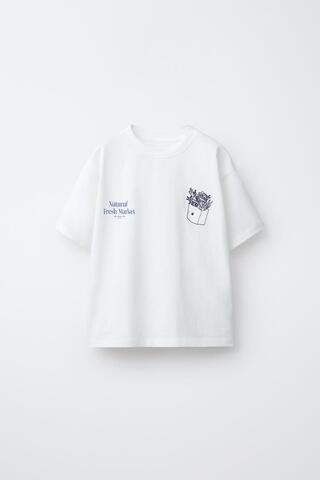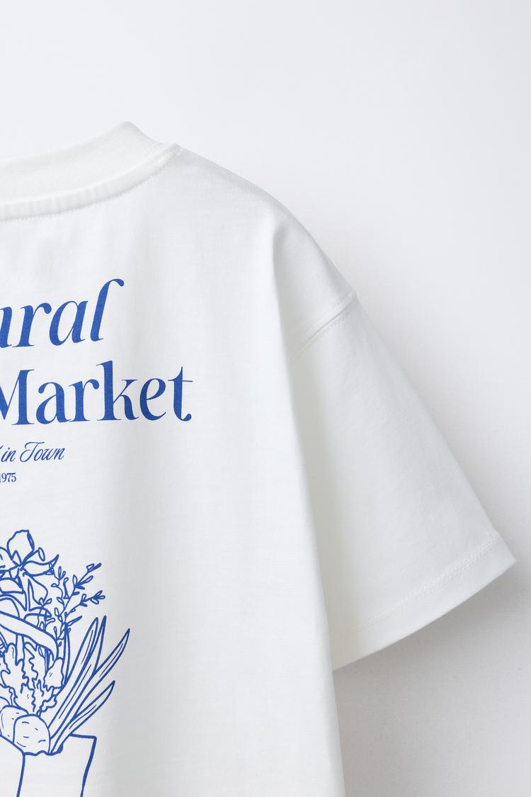 ZARA ФУТБОЛКА С ВЫШИВКОЙ И НАДПИСЬЮ, БЕЛЫЙ