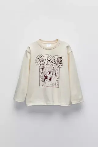 ZARA ФУТБОЛКА С ВЫШИВКОЙ НА РУКАВАХ, ЭКРЮ