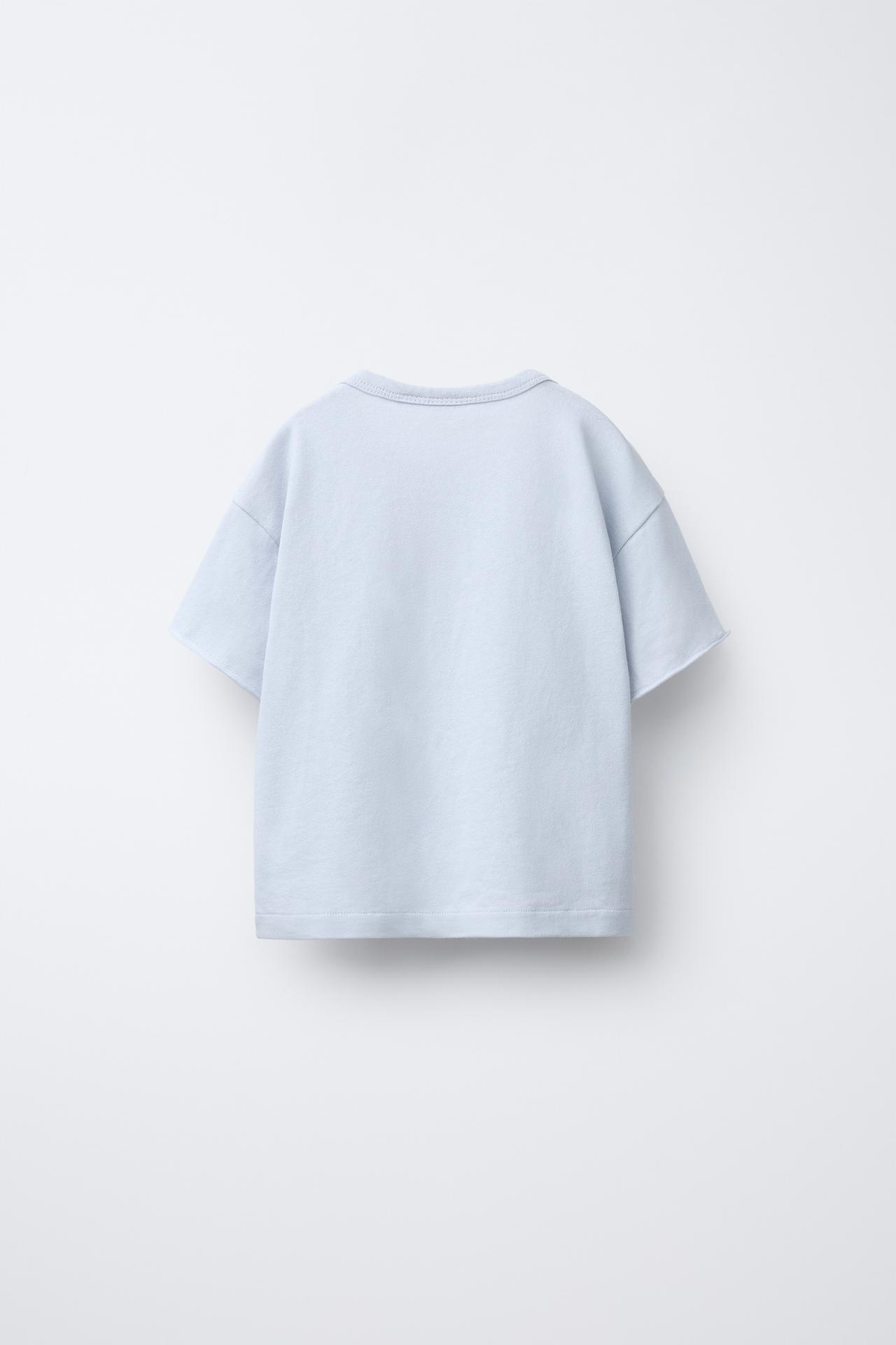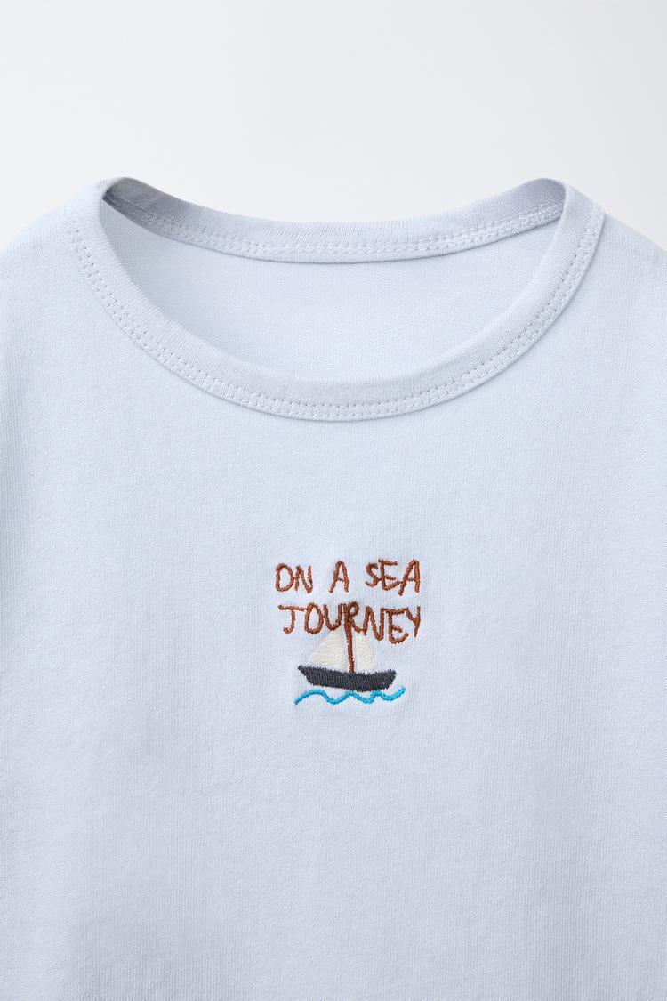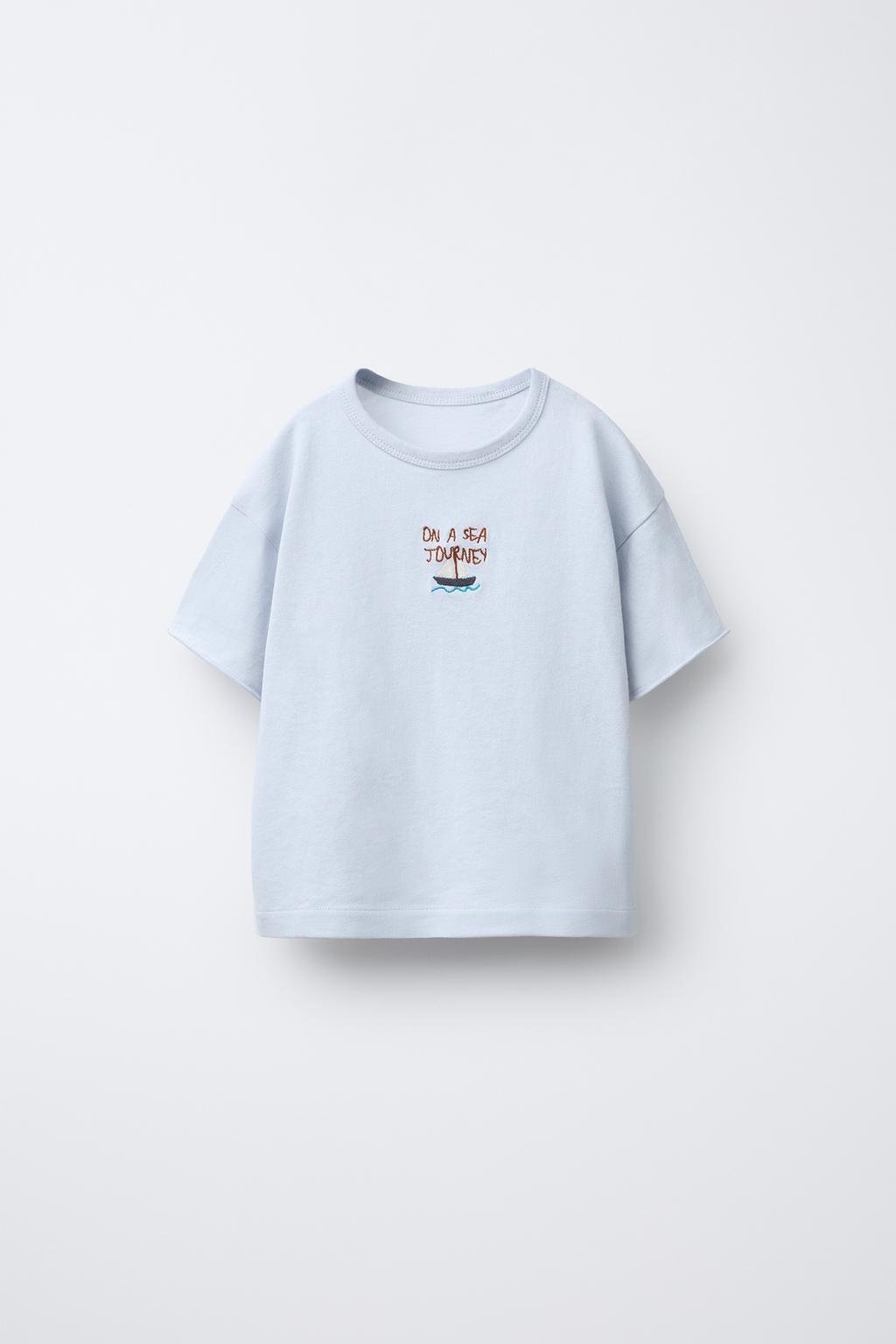 ZARA ФУТБОЛКА С ВЫШИВКОЙ, НЕБЕСНО-ГОЛУБОЙ