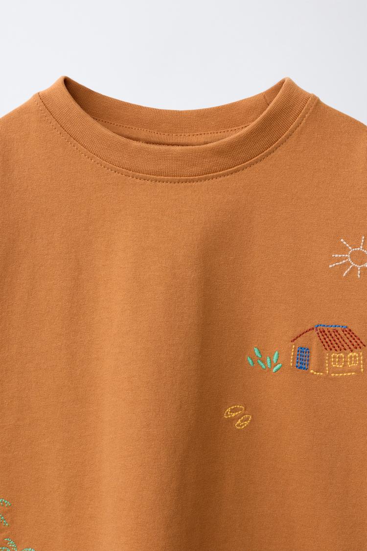 ZARA ФУТБОЛКА С ВЫШИВКОЙ, ОХРА