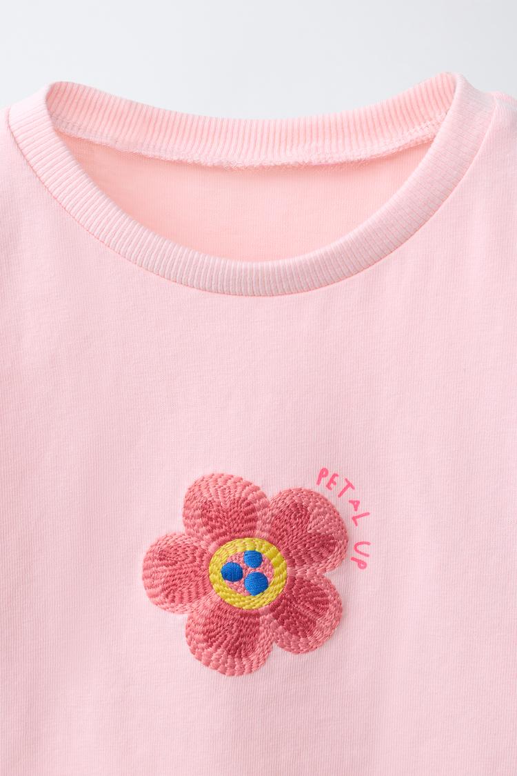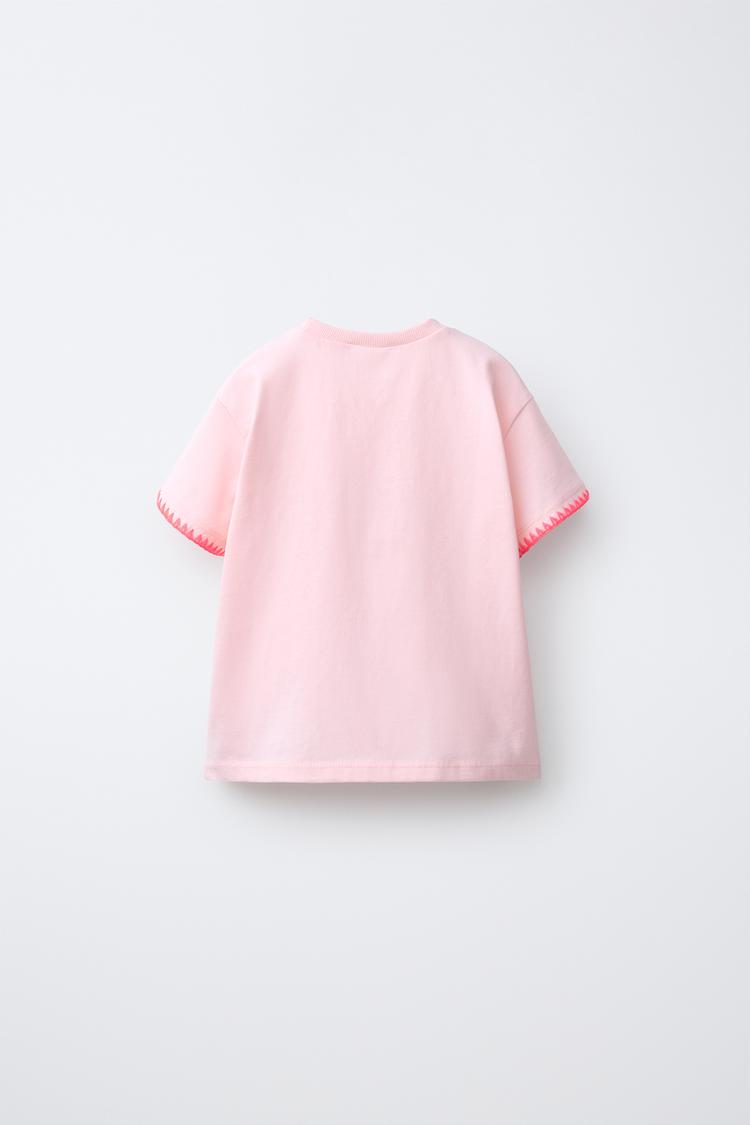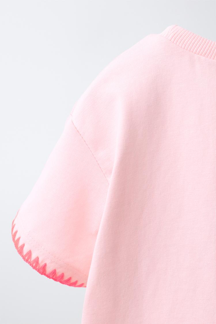 ZARA ФУТБОЛКА С ВЫШИВКОЙ, РОЗОВЫЙ