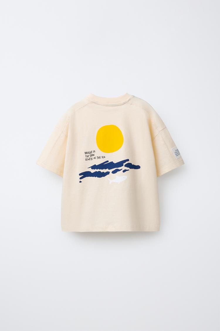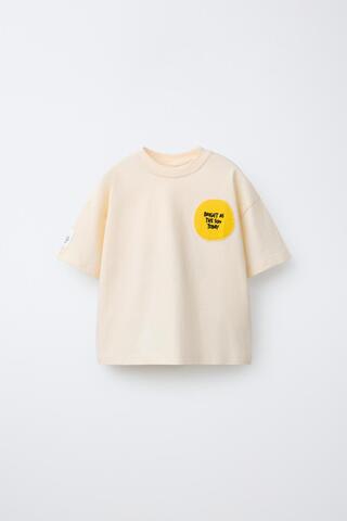 ZARA ФУТБОЛКА С ВЫШИВКОЙ, БЕЖЕВЫЙ