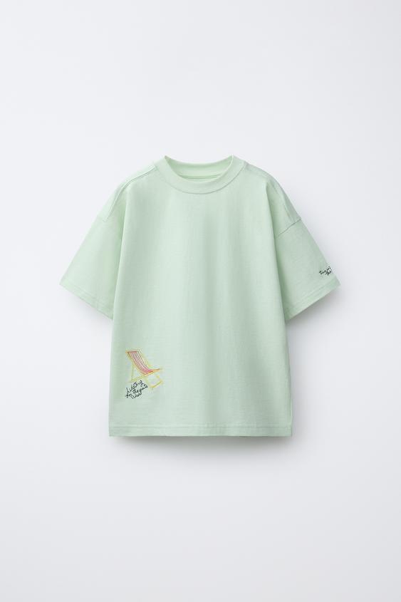 ZARА ФУТБОЛКА С ВЫШИВКОЙ, ЦВЕТ МОРСКОЙ ВОЛНЫ