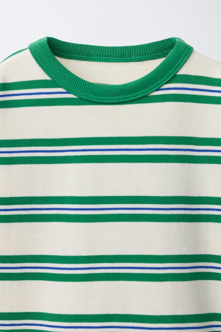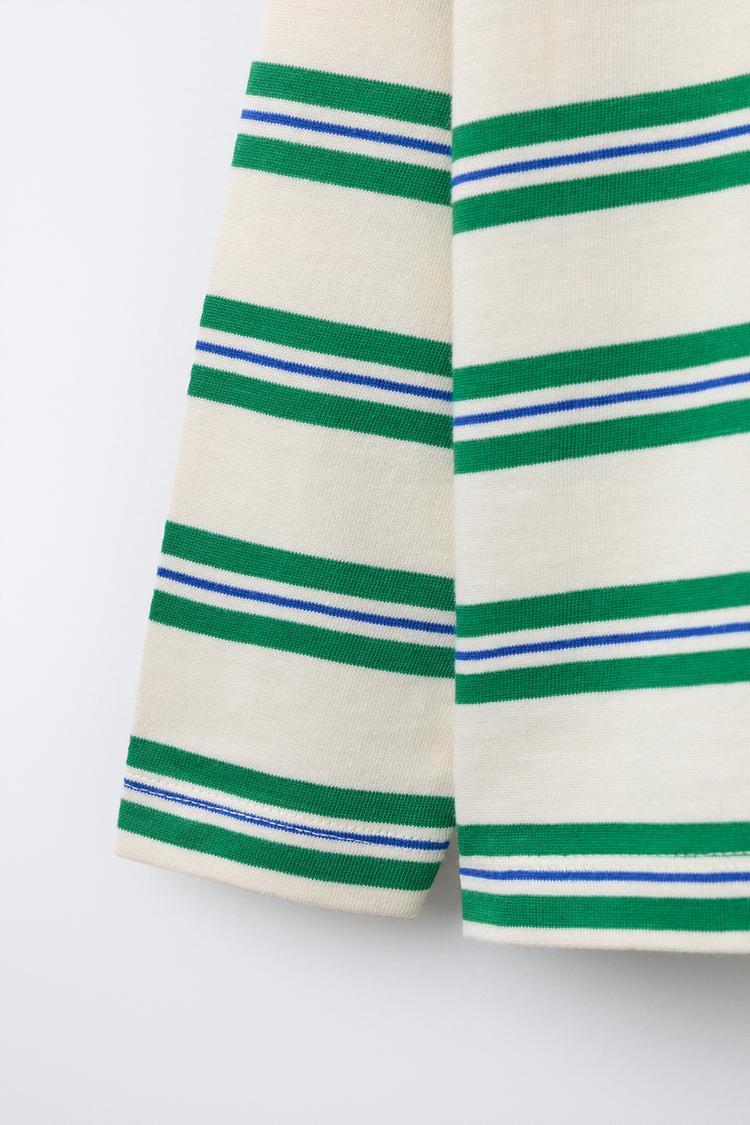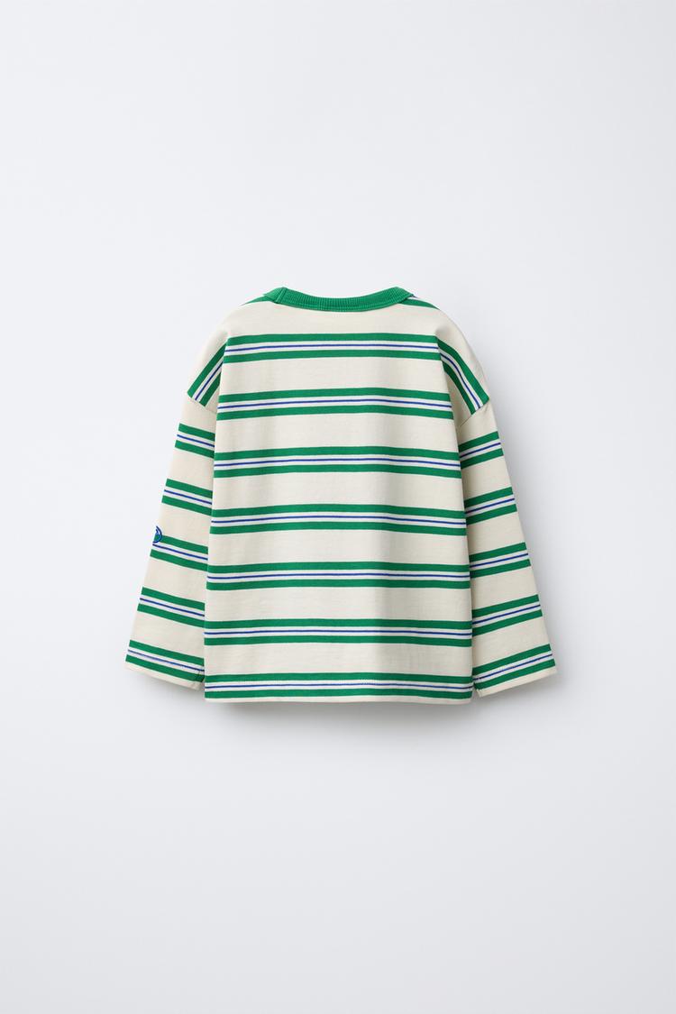 ZARA ФУТБОЛКА С ВЫШИВКОЙ В ПОЛОСКУ, БЕЛЫЙ/ЗЕЛЕНЫЙ