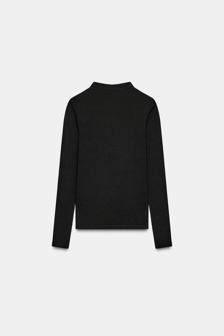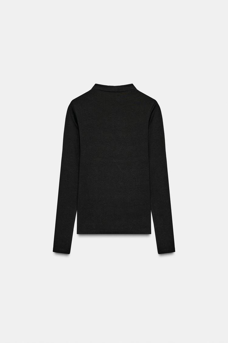 ZARA ФУТБОЛКА С ВЫСОКИМ ВОРОТНИКОМ, ЧЕРНЫЙ