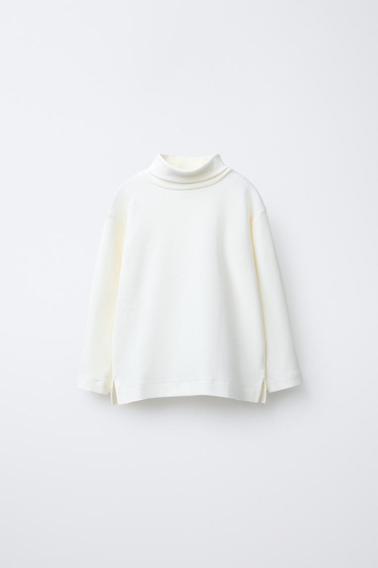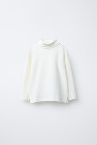 ZARA ФУТБОЛКА С ВЫСОКИМ ВОРОТНИКОМ, ЭКРЮ
