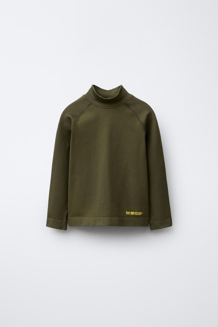 ZARA ФУТБОЛКА С ВЫСОКИМ ВОРОТНИКОМ, ХАКИ