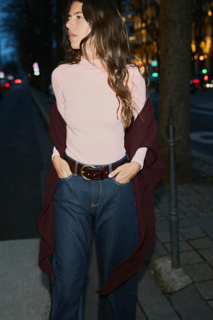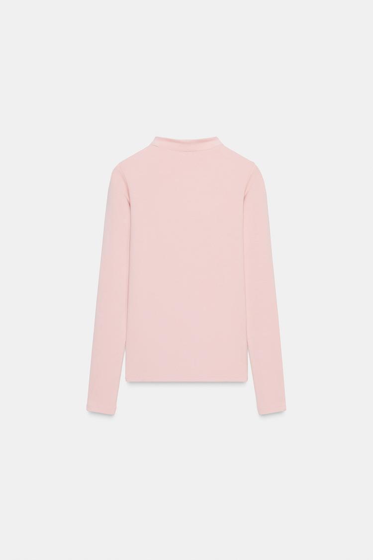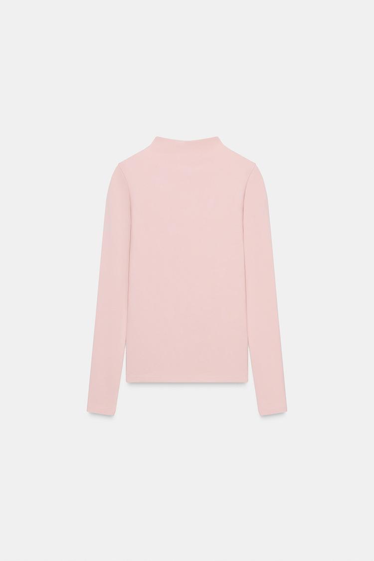 ZARA ФУТБОЛКА С ВЫСОКИМ ВОРОТНИКОМ, ПУДРОВО-РОЗОВЫЙ