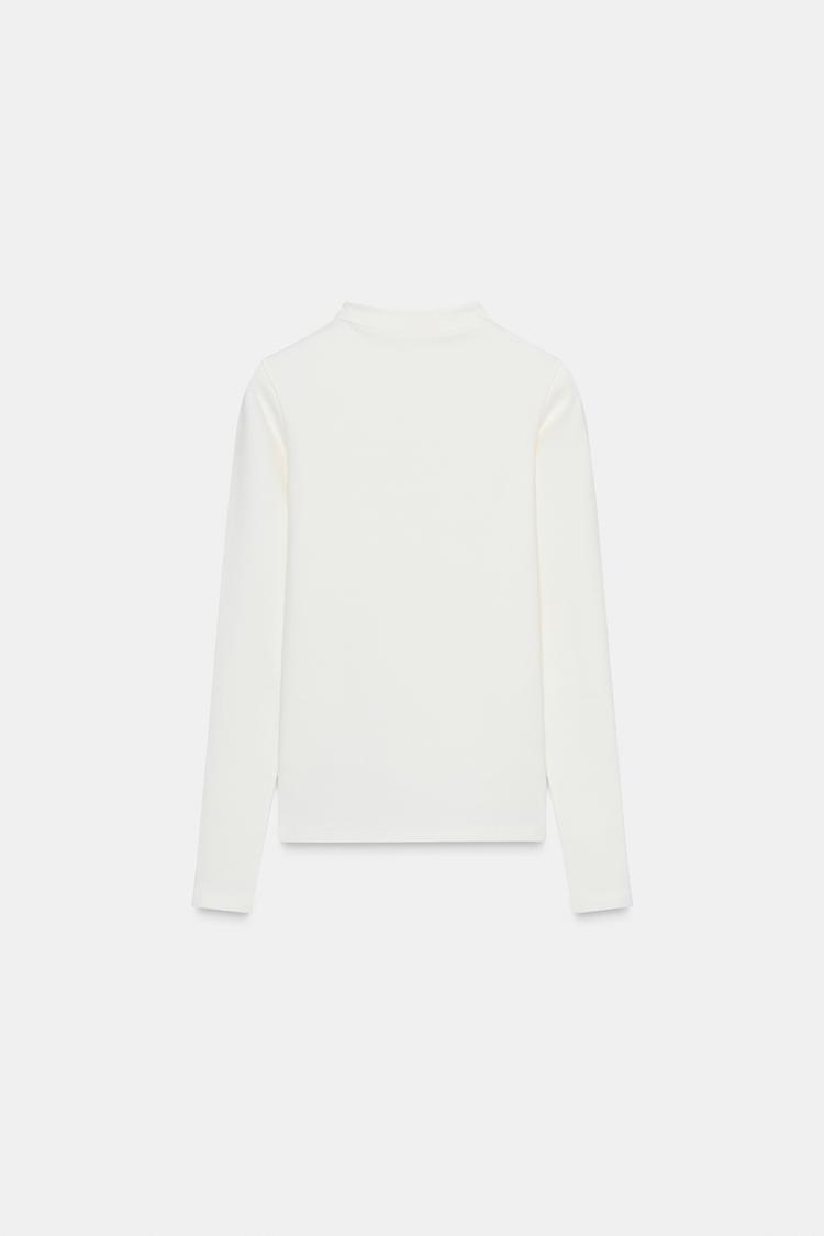 ZARA ФУТБОЛКА С ВЫСОКИМ ВОРОТНИКОМ, ЖЕЛТОВАТО-БЕЛЫЙ