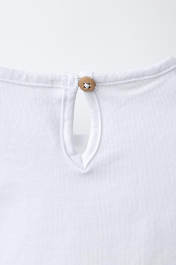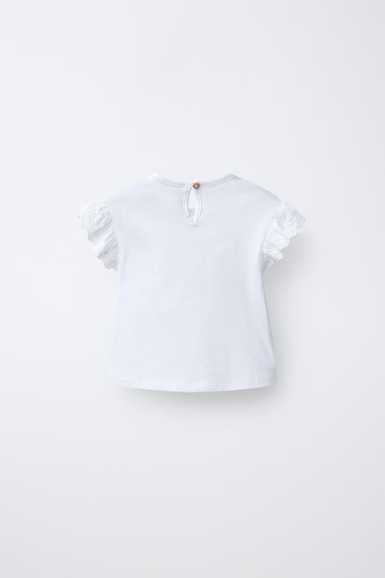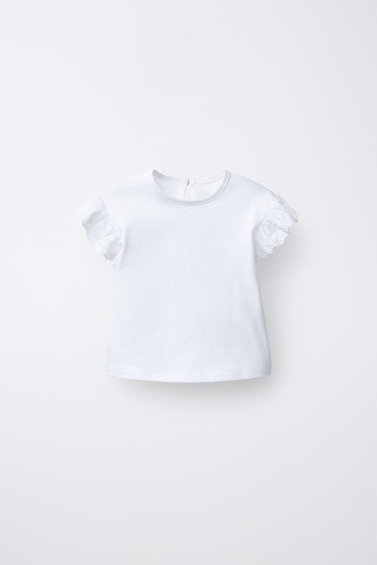 ZARA ФУТБОЛКА СО ШВЕЙЦАРСКОЙ ВЫШИВКОЙ, БЕЛЫЙ