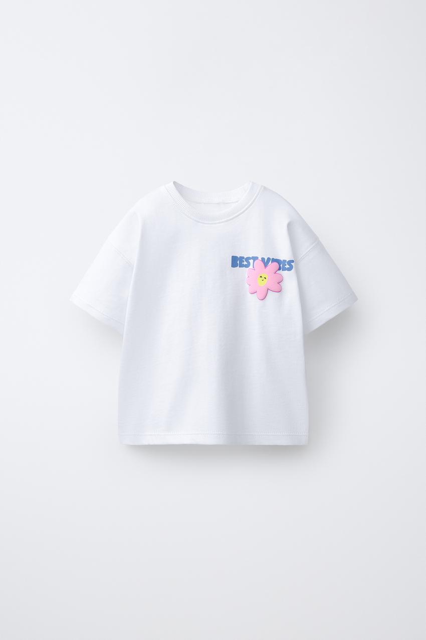 ZARA ФУТБОЛКА СО СТИКЕРАМИ, БЕЛЫЙ