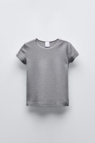 ZARA ФУТБОЛКА СО СТРАЗАМИ, АНТРАЦИТОВО-СЕРЫЙ