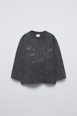 ZARA ФУТБОЛКА СО СТРАЗАМИ, АНТРАЦИТОВО-СЕРЫЙ