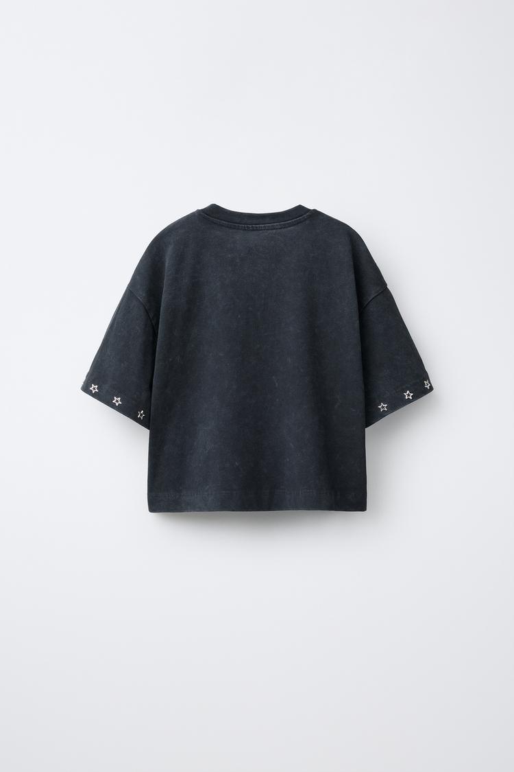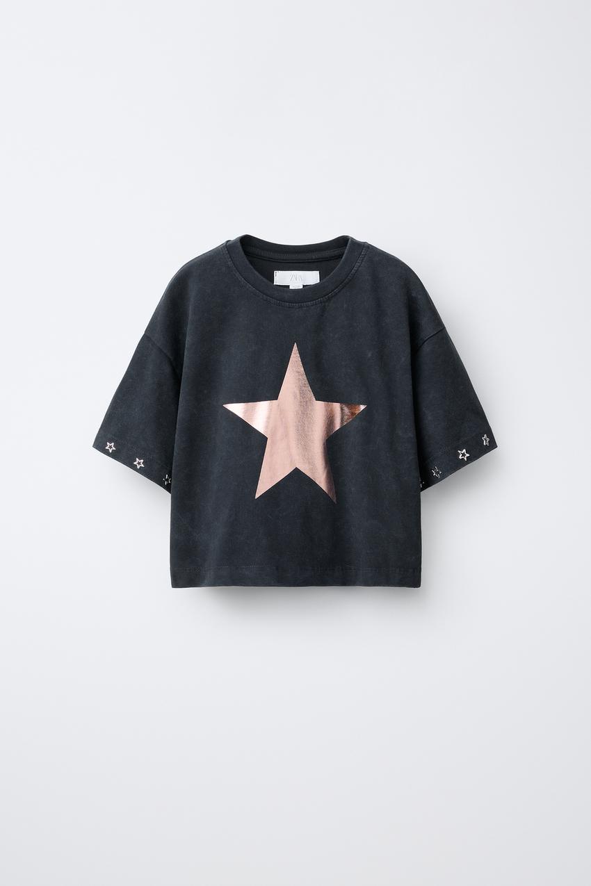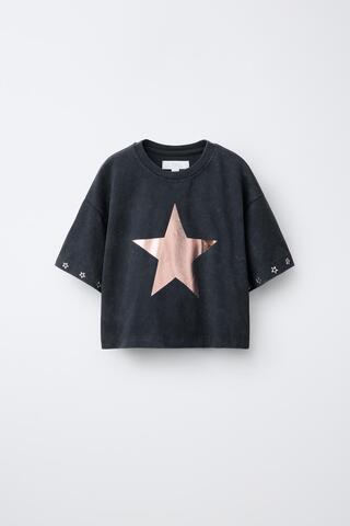 ZARA ФУТБОЛКА СО СВЕРКАЮЩИМИ ЗВЕЗДАМИ, ЧЕРНЫЙ