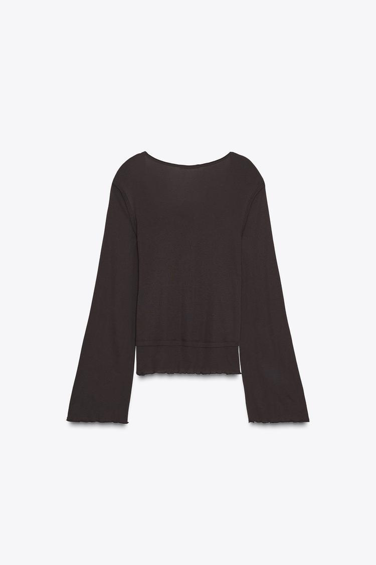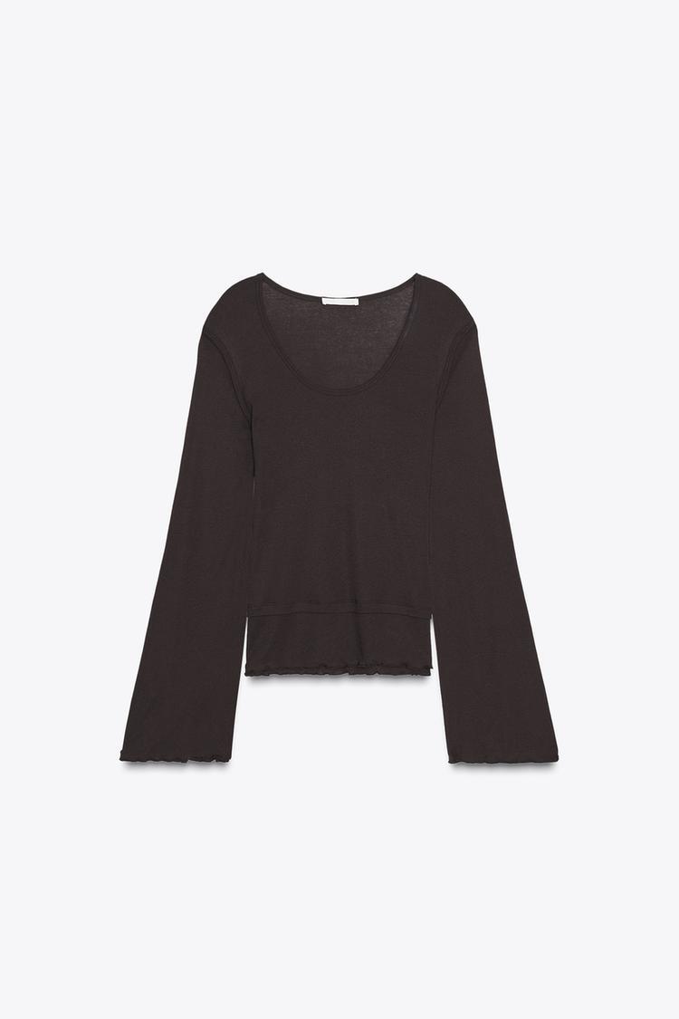 ZARA ФУТБОЛКА SOFT С ДВОЙНЫМ ЭФФЕКТОМ, ШОКОЛАДНО-КОРИЧНЕВЫЙ