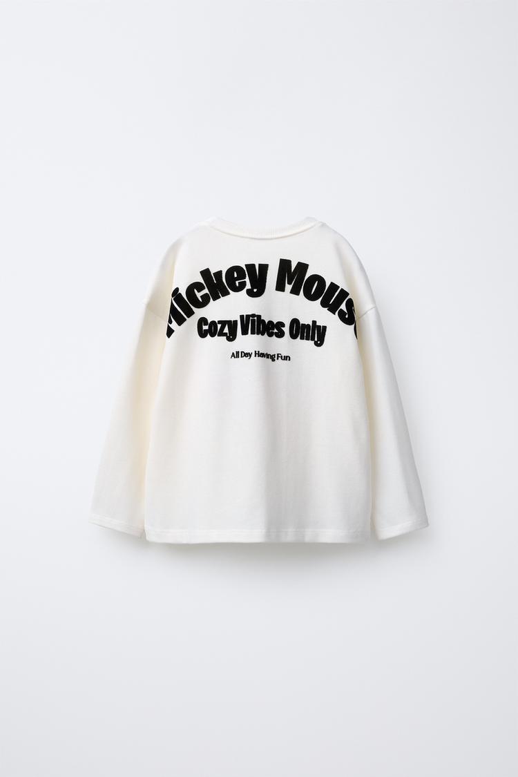 ZARA ФУТБОЛКА СРЕДНЕГО ВЕСА С ВЫШИВКОЙ «МИККИ МАУС» © DISNEY, ЭКРЮ