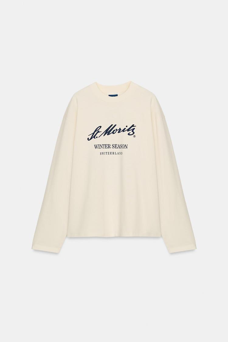 ZARA ФУТБОЛКА ST. MORITZ® С ДЛИННЫМИ РУКАВАМИ, ЭКРЮ