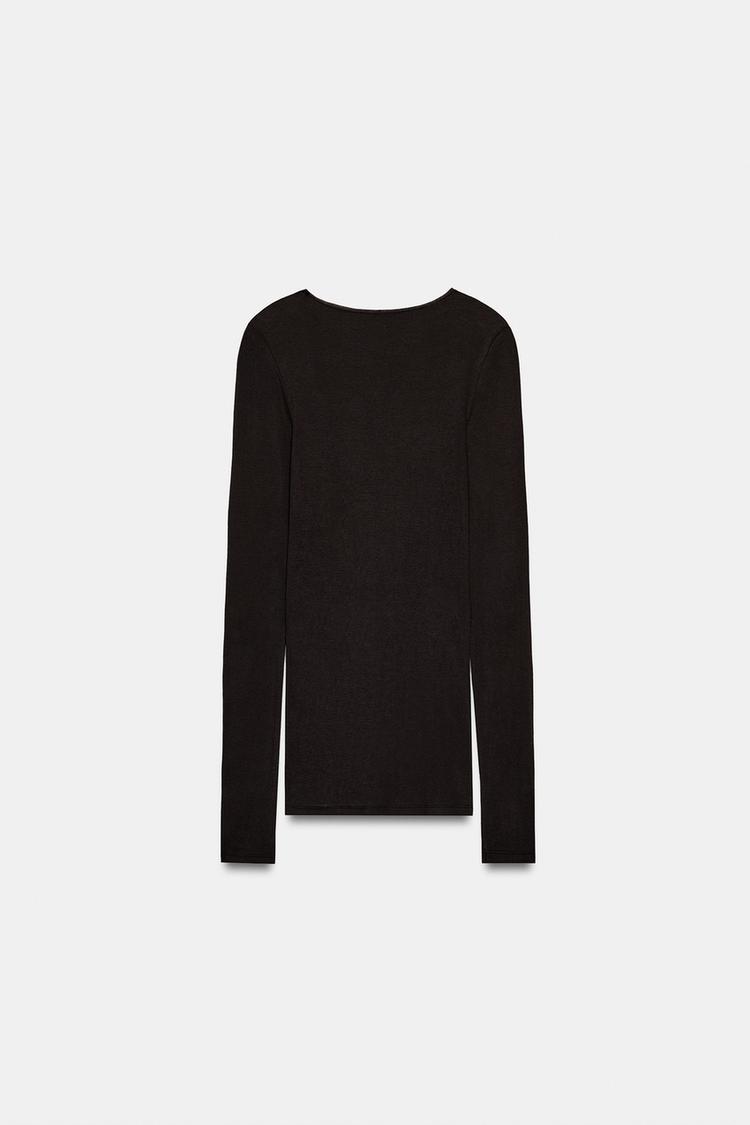 ZARA ФУТБОЛКА SUPIMA® С ДЛИННЫМИ РУКАВАМИ, ШОКОЛАДНЫЙ