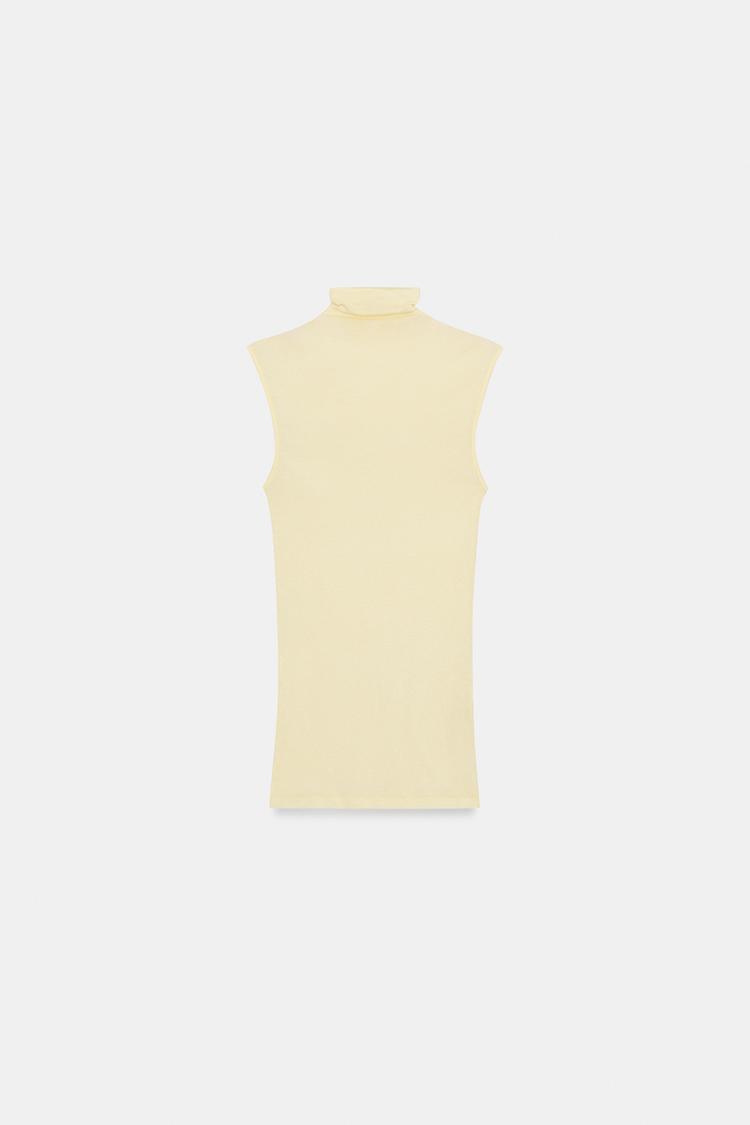 ZARA ФУТБОЛКА SUPIMA® С ВЫСОКИМ ВОРОТНИКОМ, ЦВЕТ СЛИВОЧНОГО МАСЛА