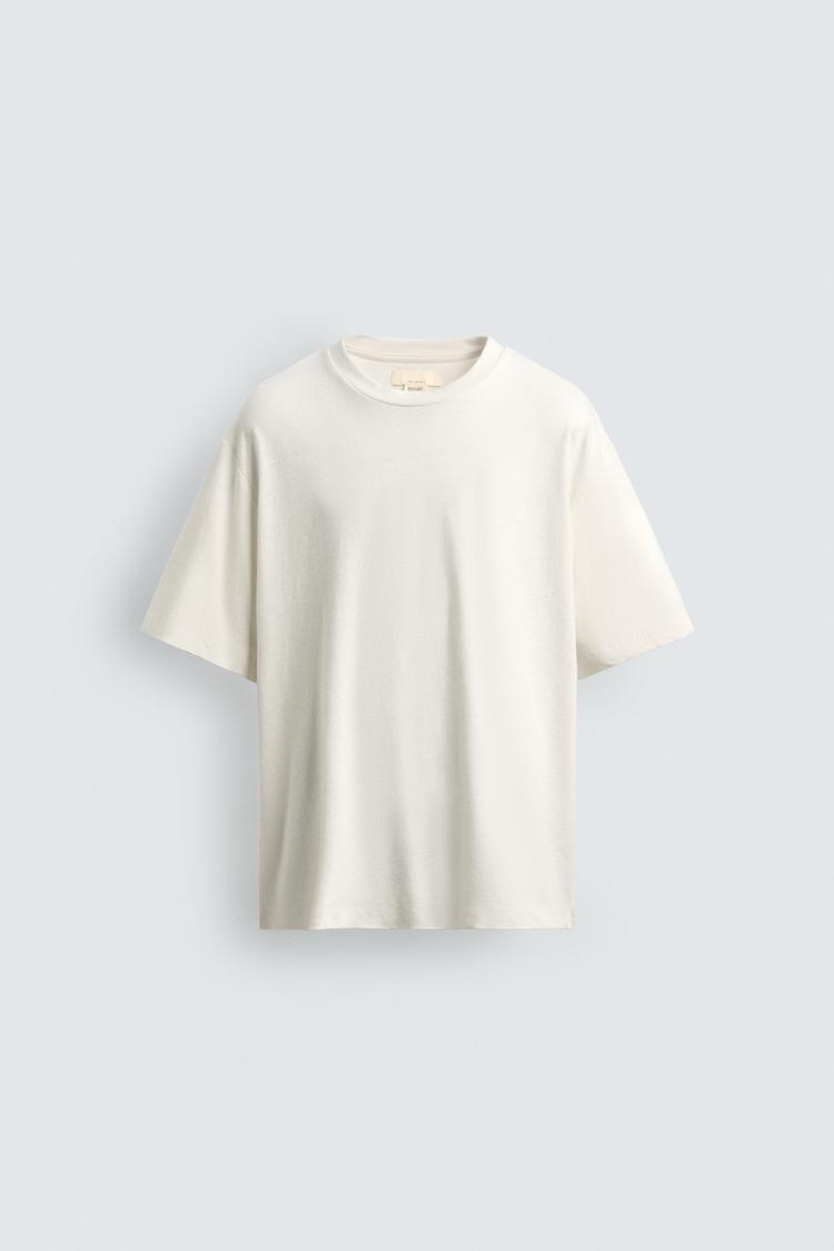 ZARA ФУТБОЛКА СВОБОДНОГО КРОЯ ИЗ ХЛОПКА И ЛЬНА, БЕЛЫЙ