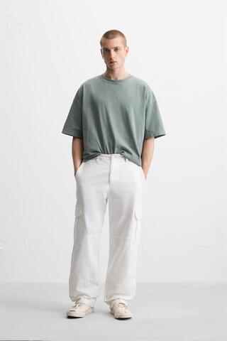 ZARA ФУТБОЛКА СВОБОДНОГО КРОЯ С ЭФФЕКТОМ ПОТЕРТОСТИ, ЛИНЯЛЫЙ ЗЕЛЕНЫЙ