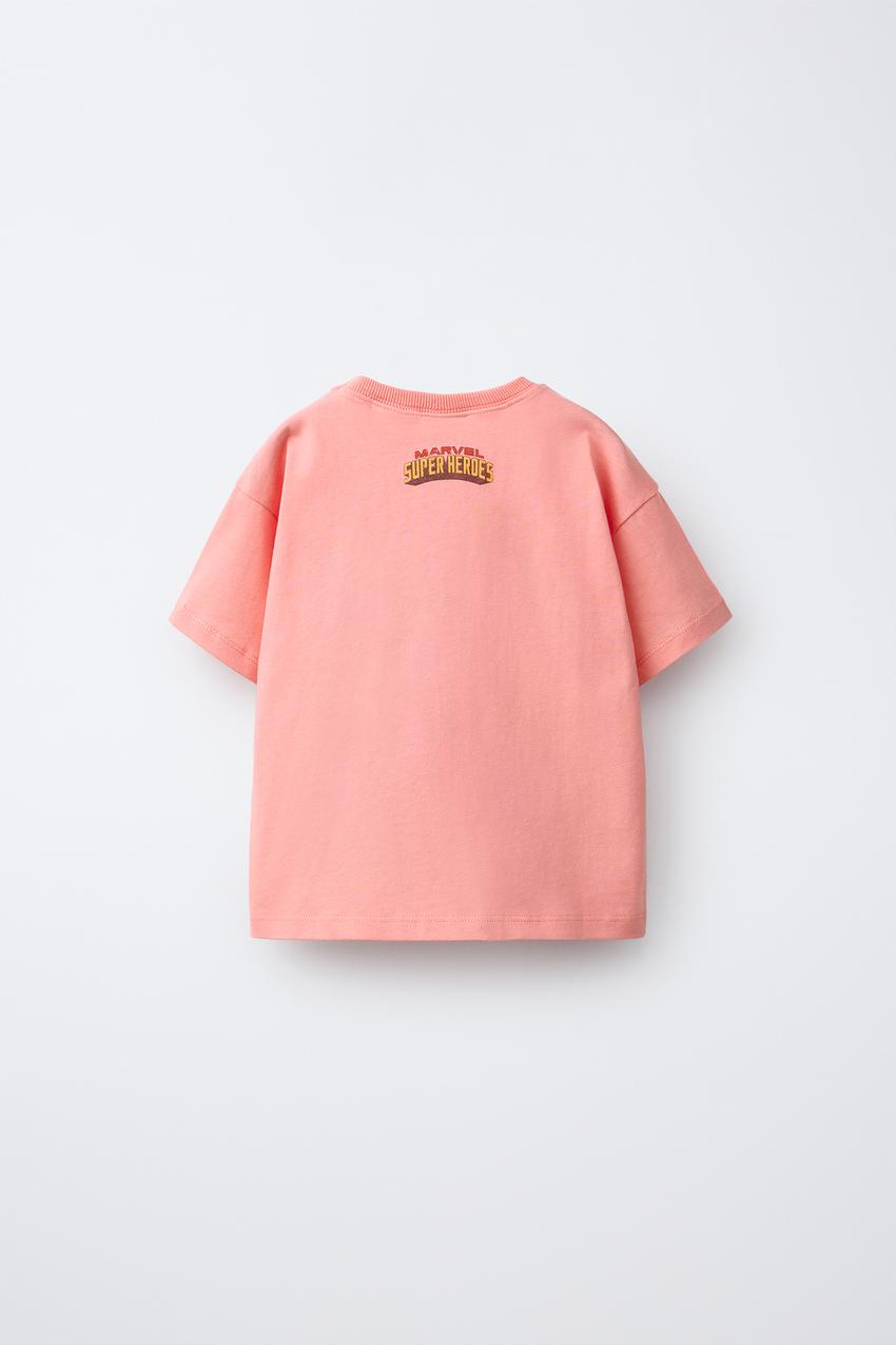 ZARA ФУТБОЛКА THE AVENGERS IRON MAN © MARVEL, ЛИНЯЛЫЙ РОЗОВЫЙ