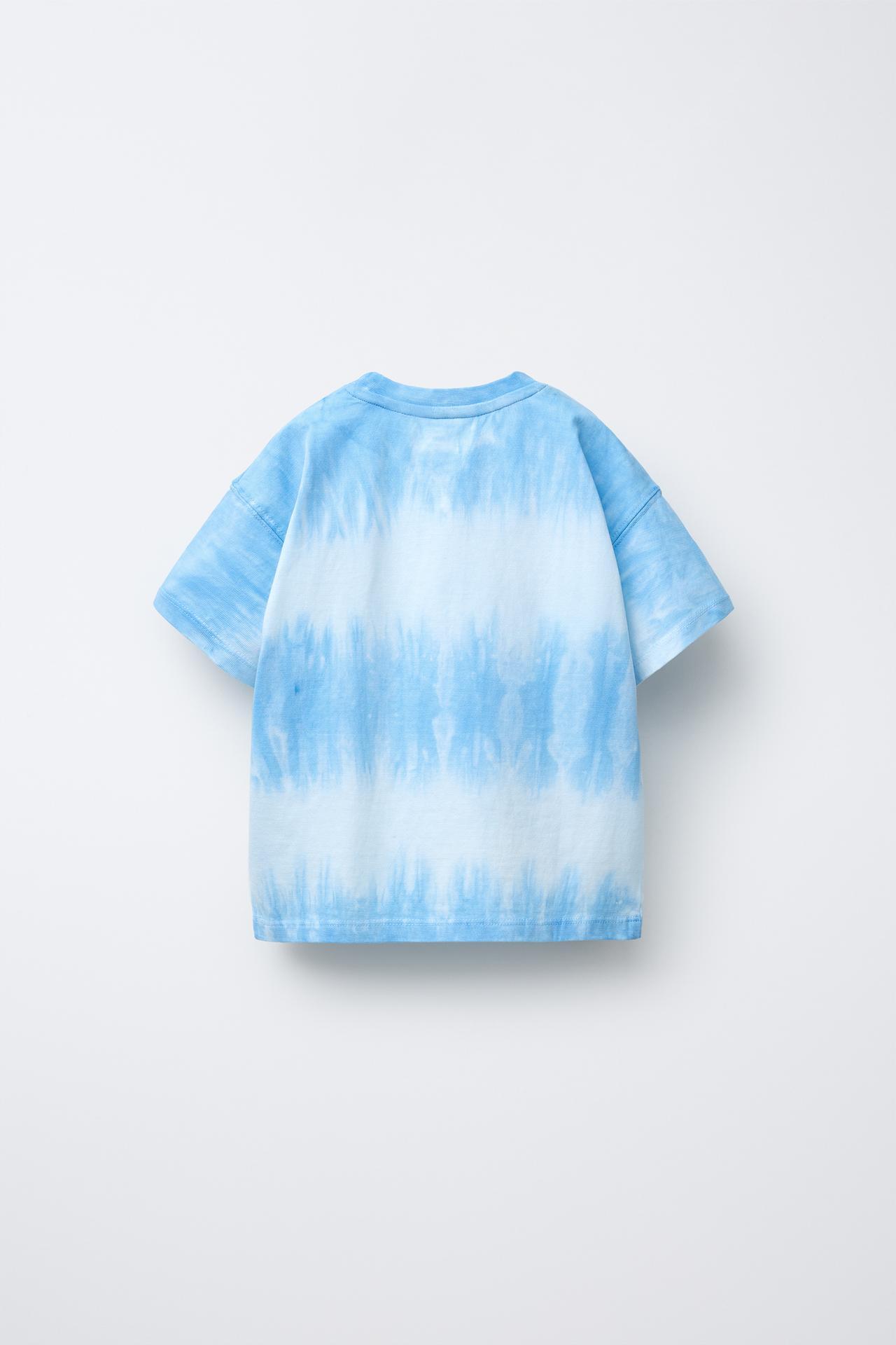 ZARA ФУТБОЛКА TIE-DYE С ВЫШИВКОЙ, СИНИЙ