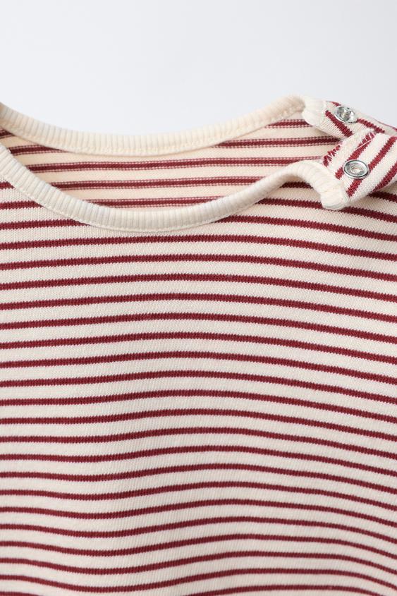 ZARA ФУТБОЛКА В ПОЛОСКУ, ЭКРЮ/КРАСНЫЙ