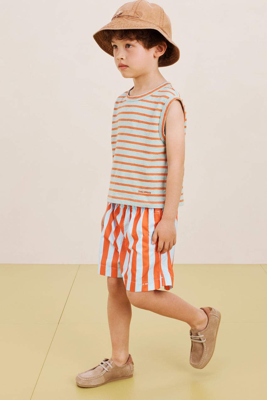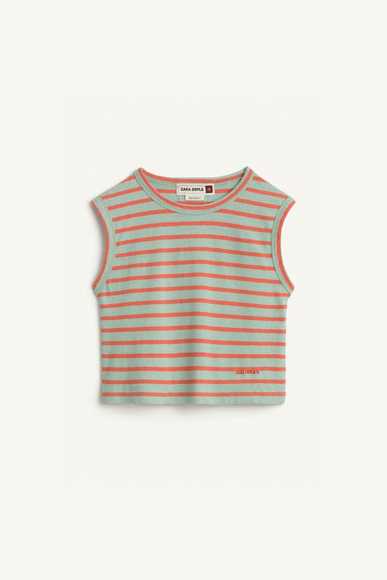 ZARA ФУТБОЛКА В ПОЛОСКУ, ПЕРСИКОВЫЙ